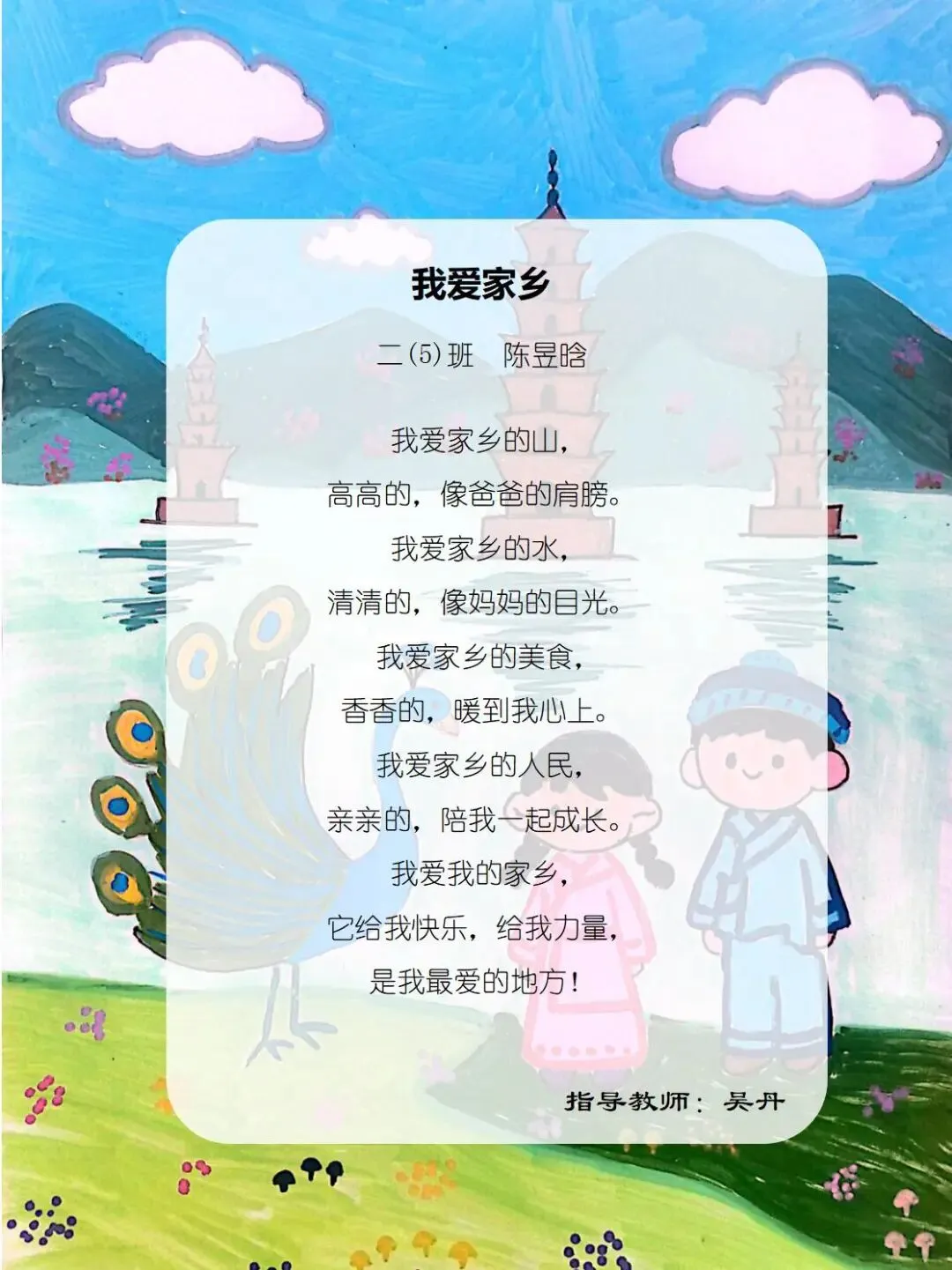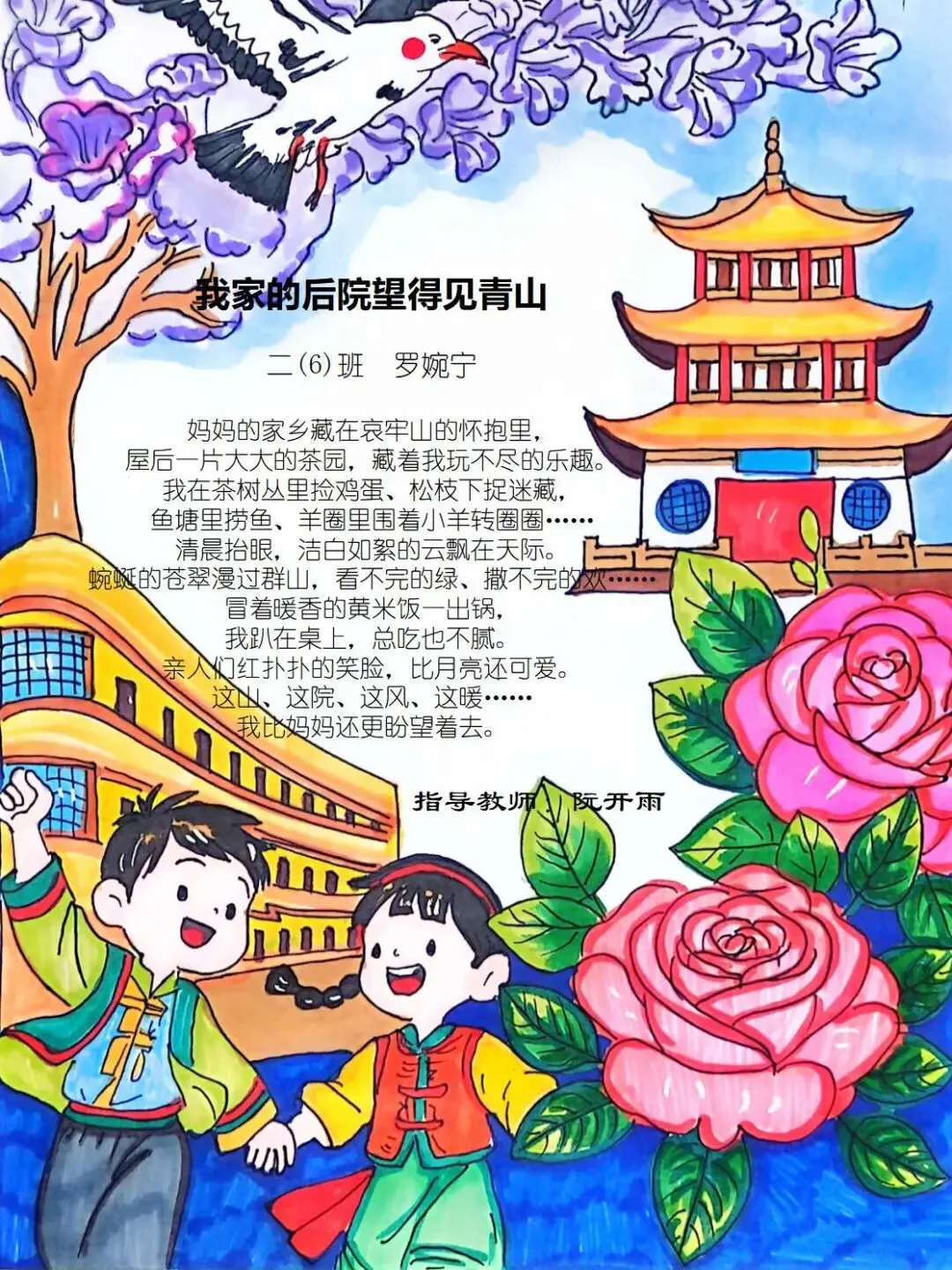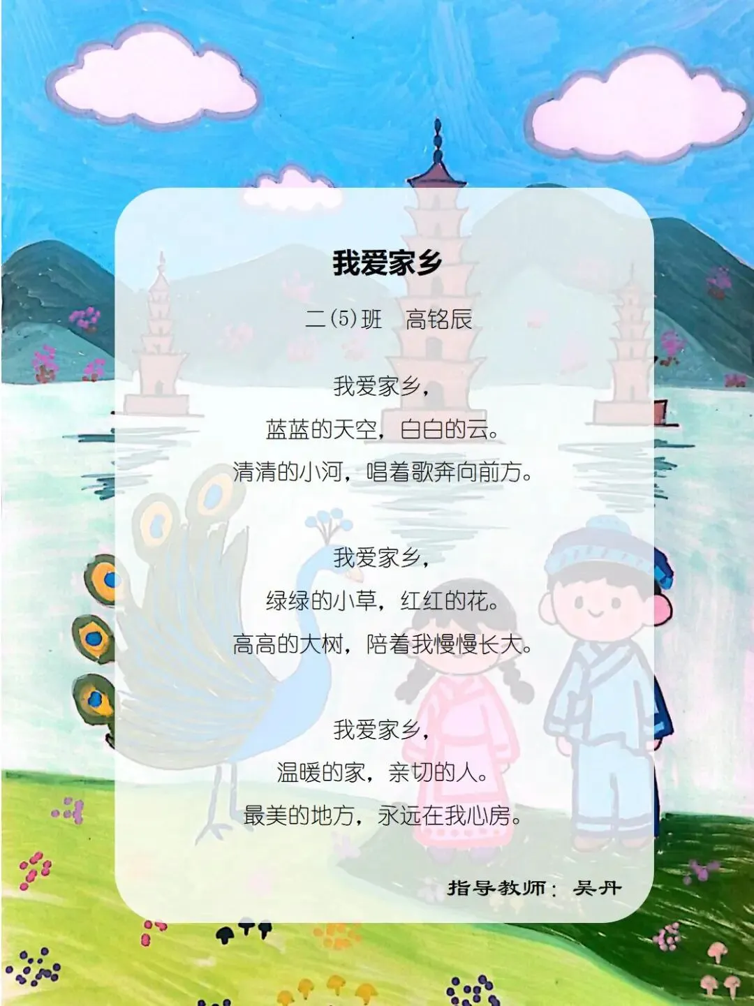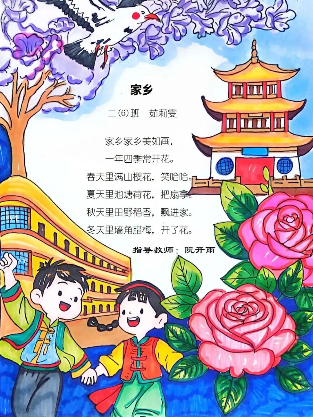 从家乡的一花一木,到华夏的一山一水,四班小诗人将乡土深情与中华一家亲的温暖,悄悄藏进了每一行温柔文字里。