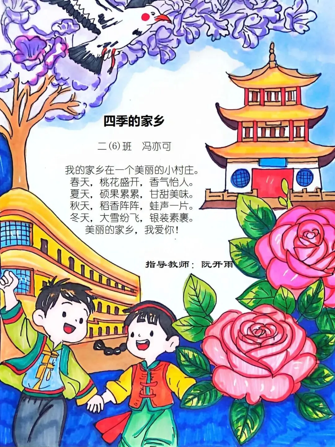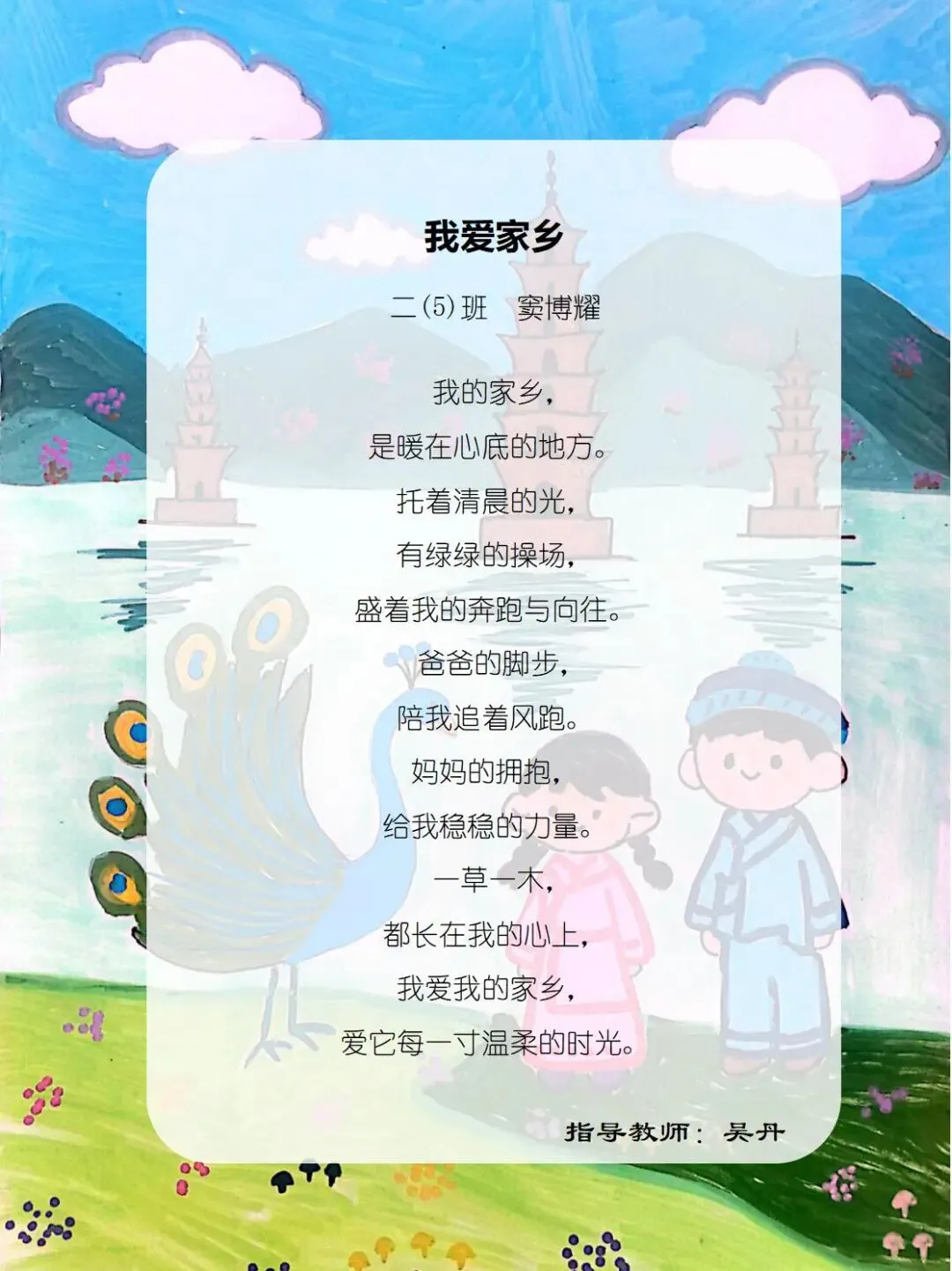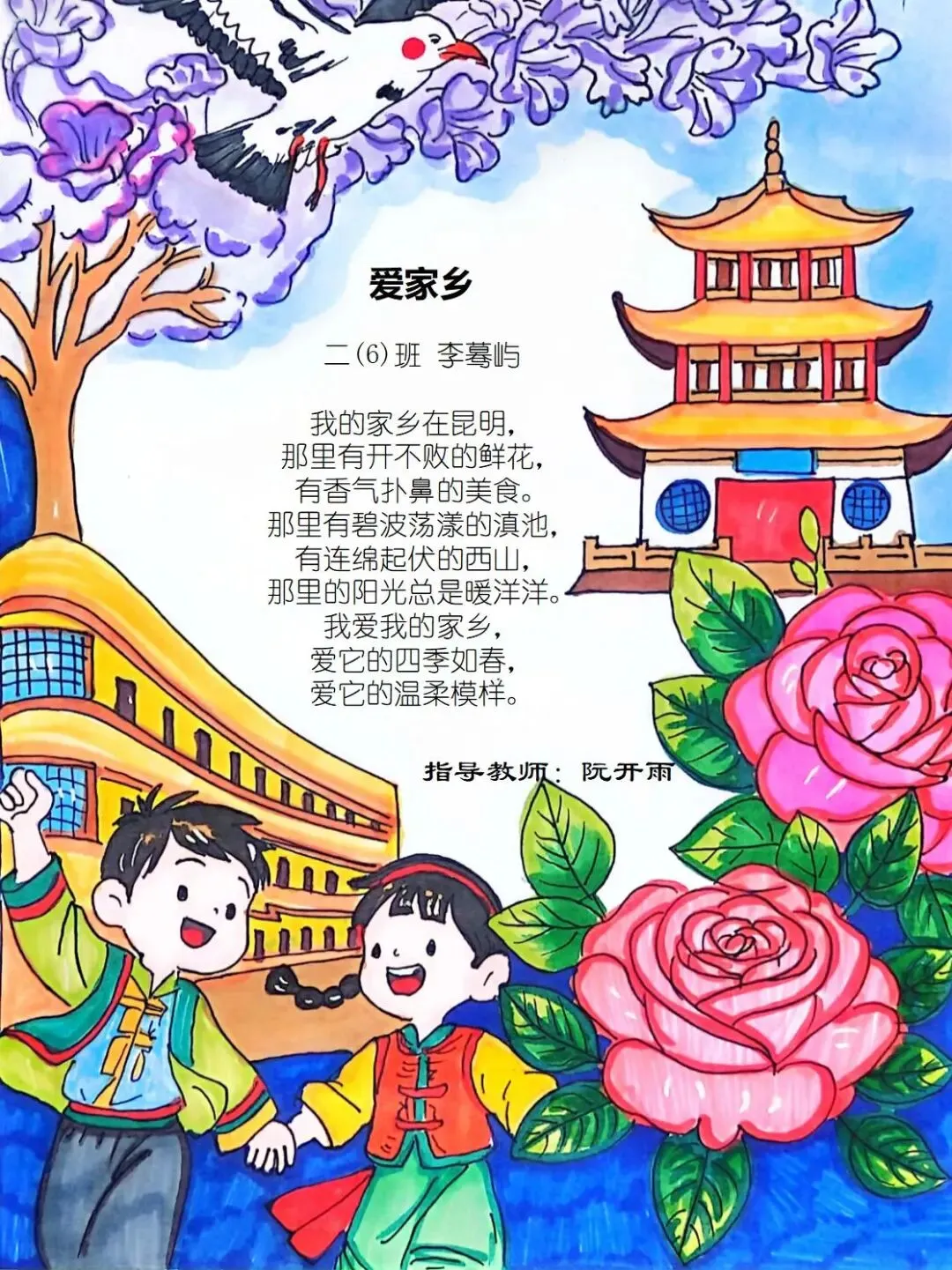 从家乡的一花一木,到华夏的一山一水,四班小诗人将乡土深情与中华一家亲的温暖,悄悄藏进了每一行温柔文字里。