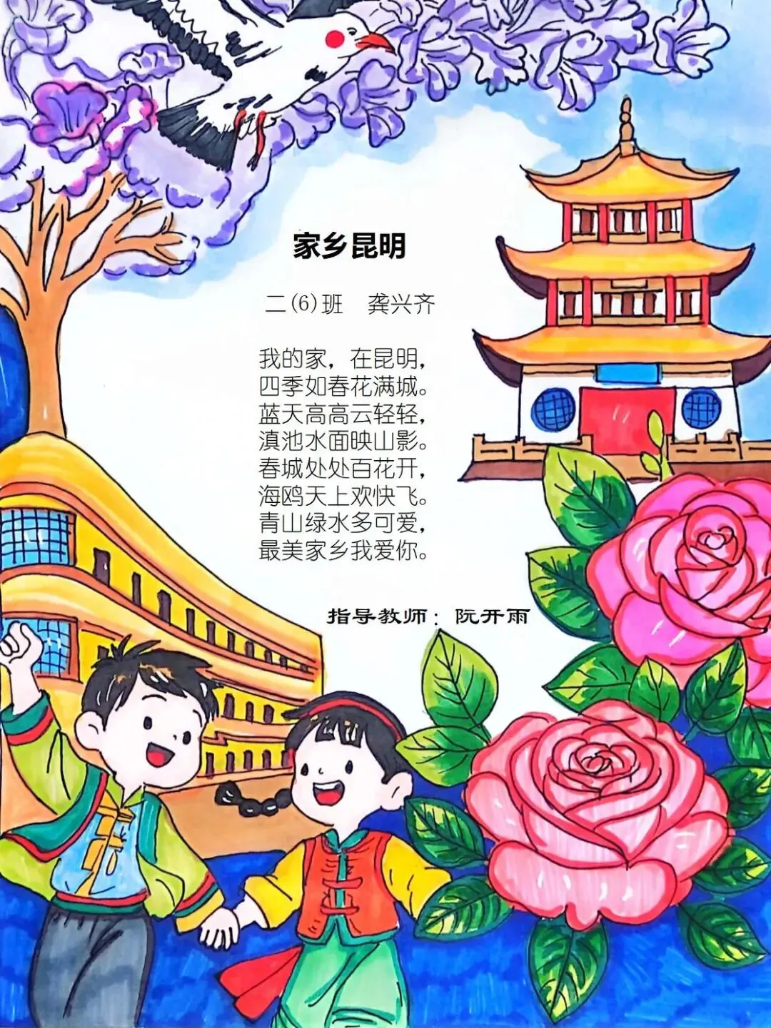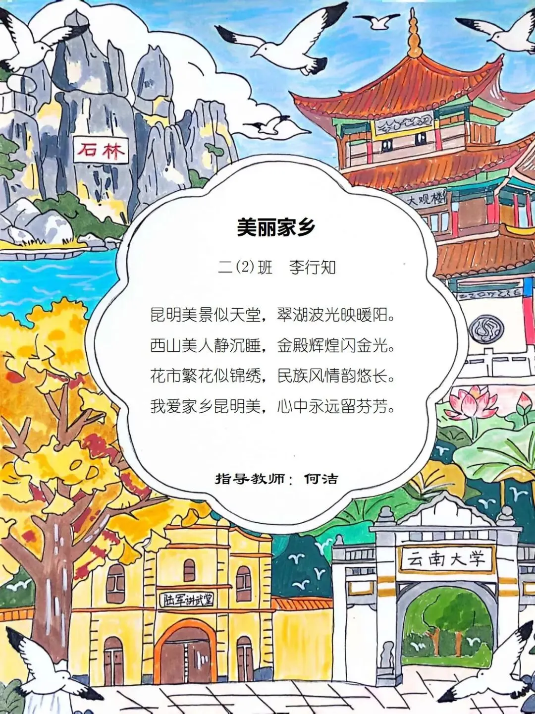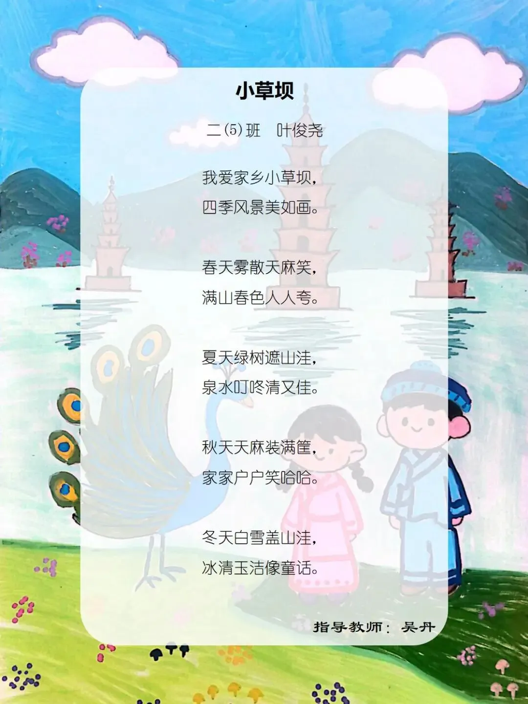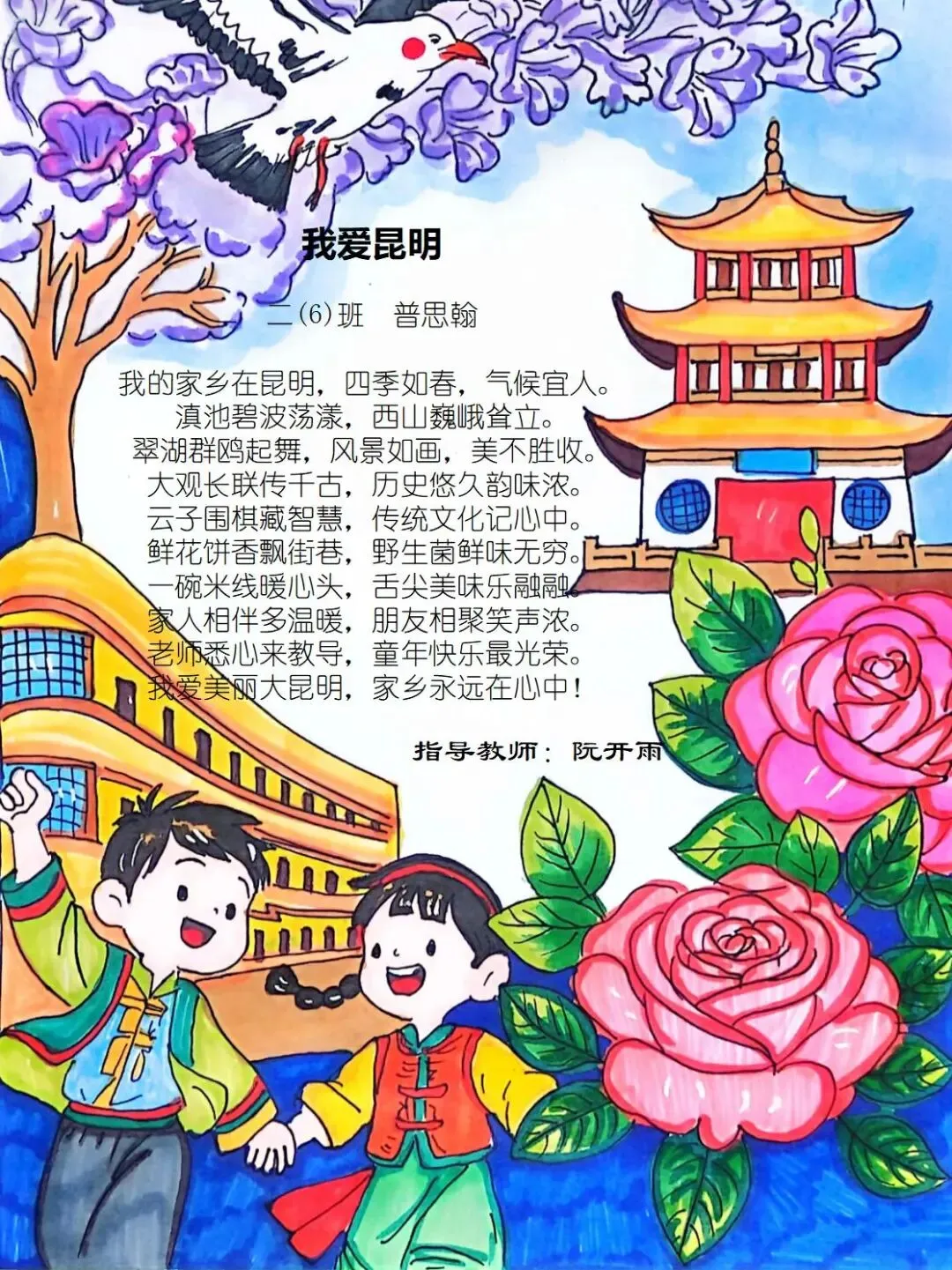 从家乡的一花一木,到华夏的一山一水,四班小诗人将乡土深情与中华一家亲的温暖,悄悄藏进了每一行温柔文字里。
