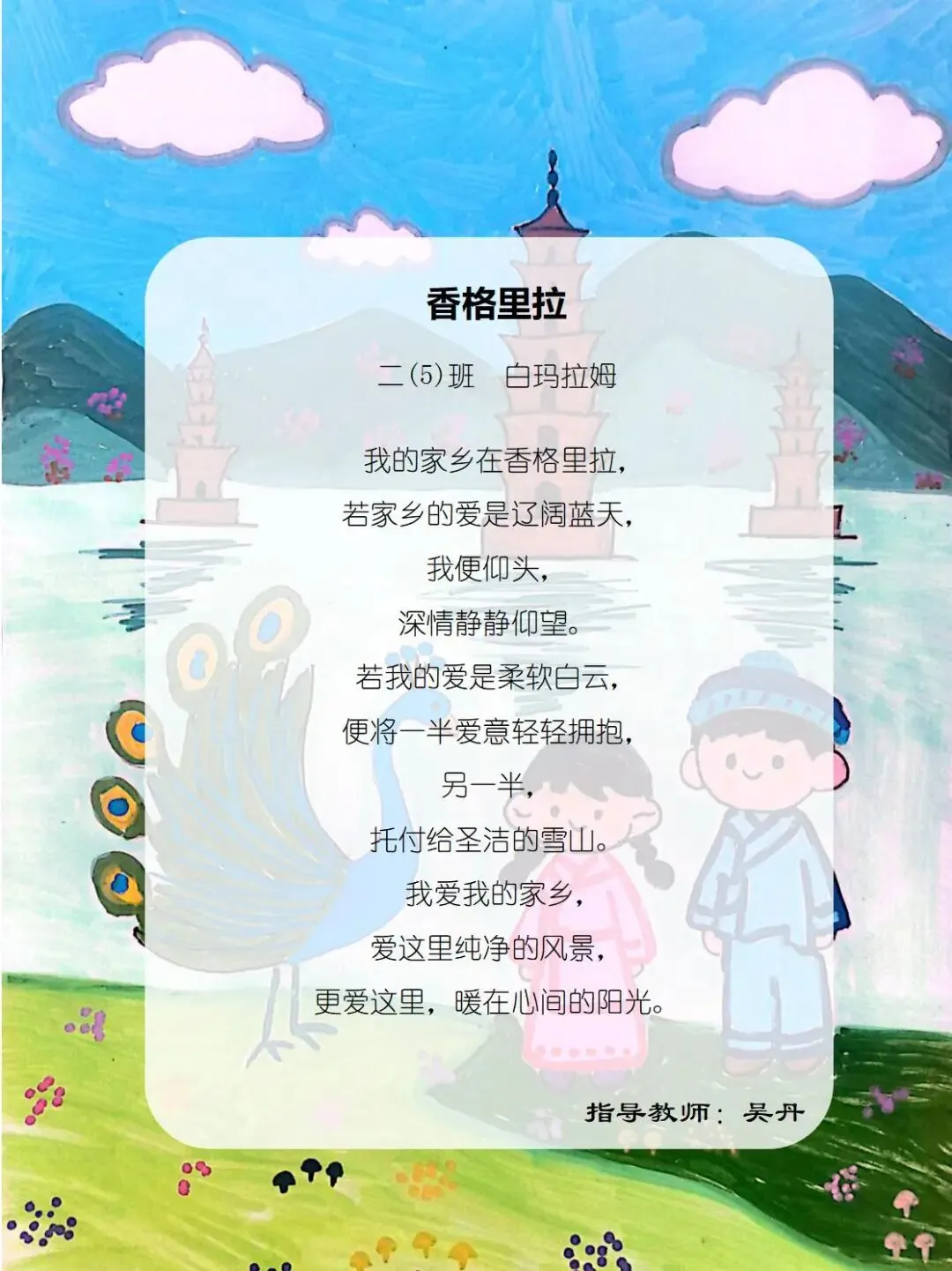 家乡的美好共分享,民族的情谊共珍藏,九班的诗行里,藏着对故土的眷恋,每一句都溢满童真里的家国情怀。