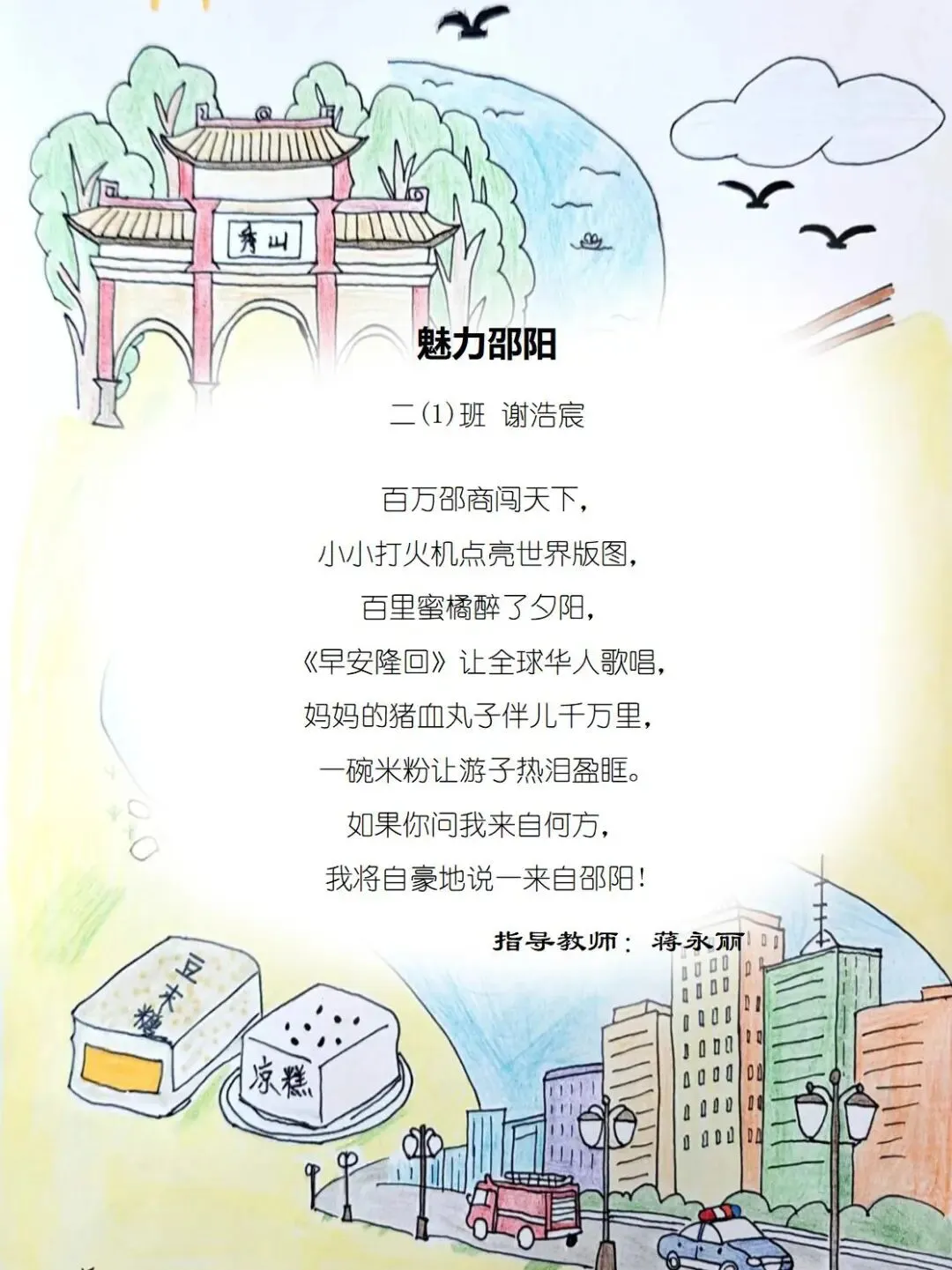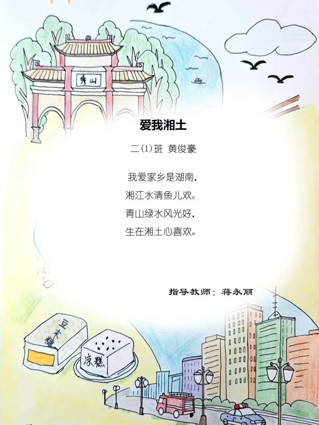 在学校领导的关怀下,在下年级干部、德育处主任朱健老师和年级组长周姗仪老师的引领下,在全体二年级老师与家长的齐心助力下,这场以“爱家乡”为主题的诗意之旅,温柔开启并暖意渐浓。孩子们用纯真的心灵感受乡土之美,用稚嫩的笔触书写家国深情。在这里,家乡的风物是最美的诗行,民族的情谊是最暖的篇章,每一行文字都藏着童心向党的赤诚与对家国的热爱。