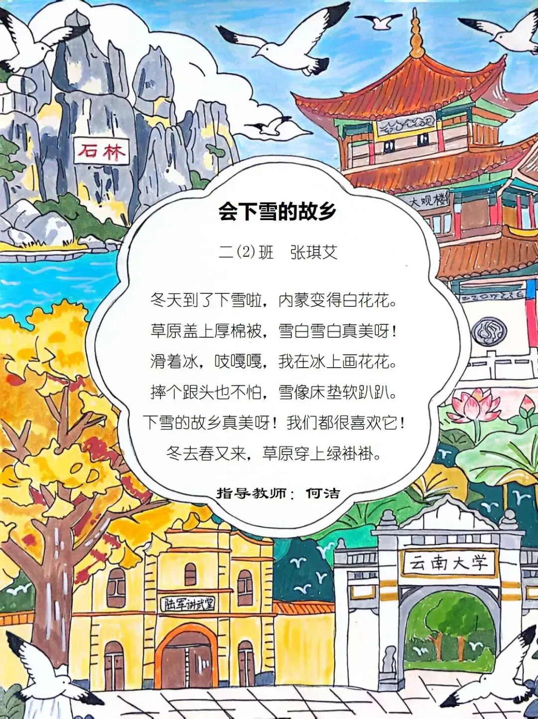 家乡风物似暖阳,民族同心似春光,十班的小诗,字字句句都是对乡土的感恩,更是对中华一家亲的深情礼赞。
