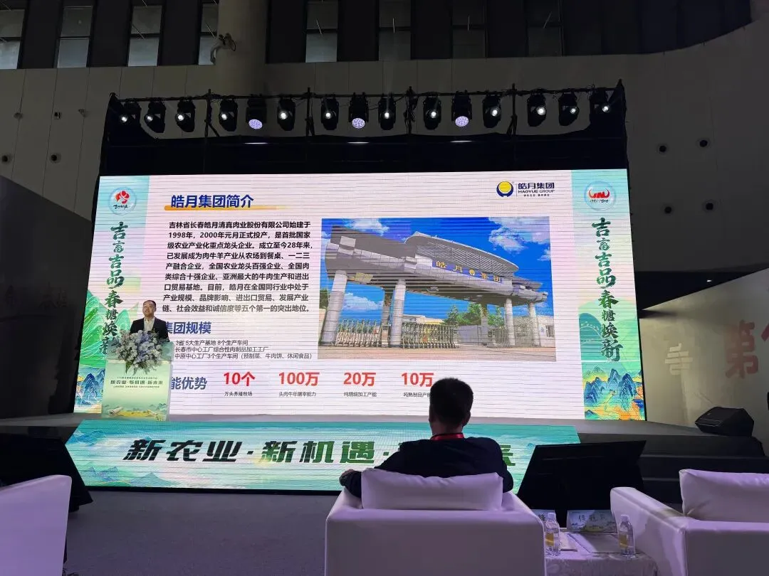 展会期间,“吉畜吉品 春糖焕新”吉林畜牧新品发布会在4号馆绿色农业馆同步举行,集中推介了“吉牛中国牛”与“吉林梅花鹿”两大区域公用品牌及系列新品。皓月集团作为吉林省畜牧企业代表上台进行新品推介,着重介绍了卤香牛肉和蜜香风干牛肉筋两大热门新品。