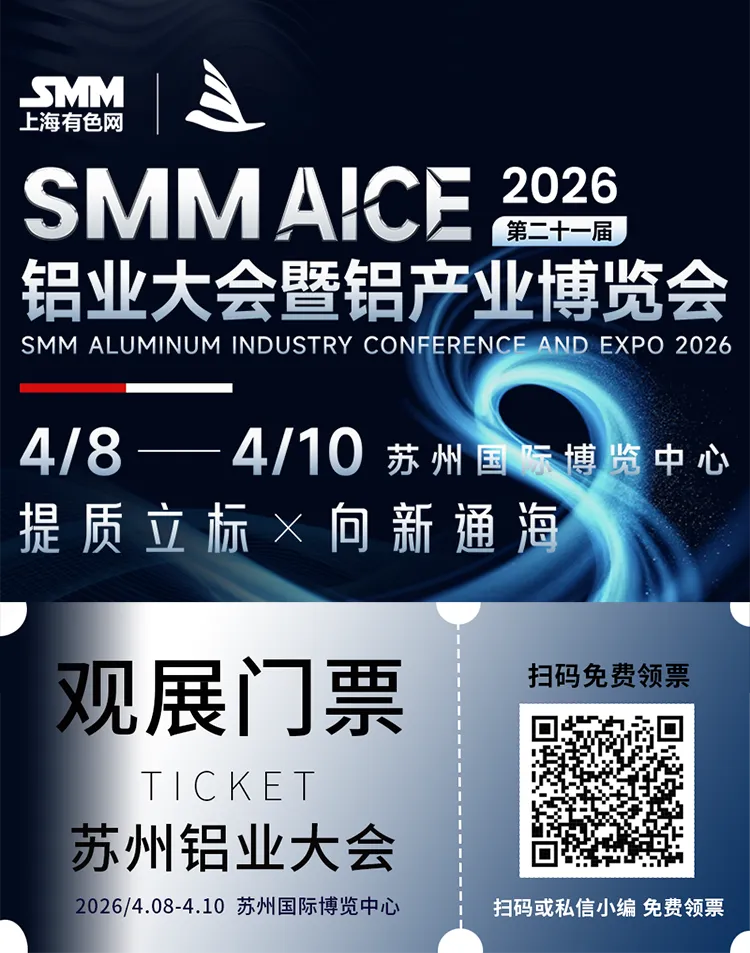 2026年4月8日至10日,SMM AICE 2026铝业大会暨铝产业博览会在苏州国际博览中心盛大举办,诚邀行业同仁共赴这场全产业链产品展示、思想碰撞与资源对接的年度盛宴,一同探索铝产业提质立标、向新通海的发展新路径。