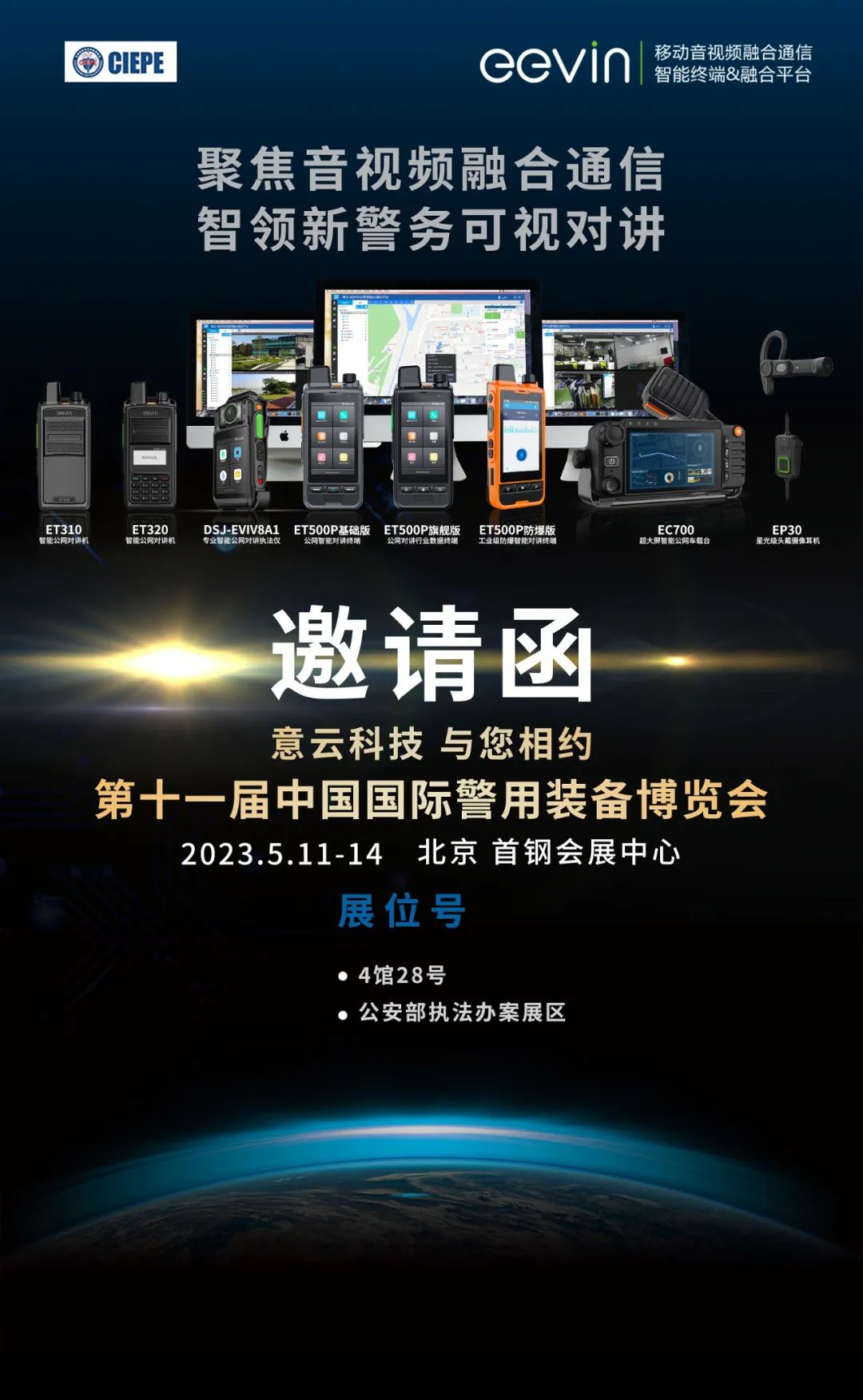 深圳意云科技即将亮相2023第十一届北京警博会(展位号:4馆28号),为广大朋友带来一系列丰富多样的移动音视频对讲终端及行业解决方案,现场交流体验。届时,意云还将携年度新品亮相,尽请期待~