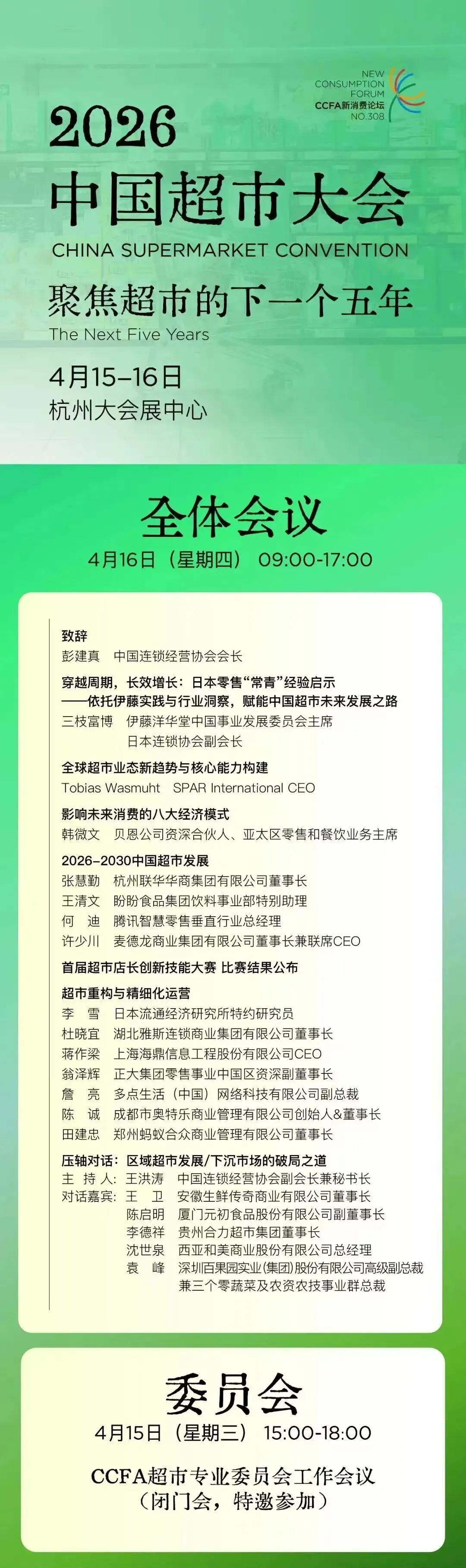 中国超市大会:面向中国超市行业的高规格、专业性年度盛会。探索穿越周期路径。