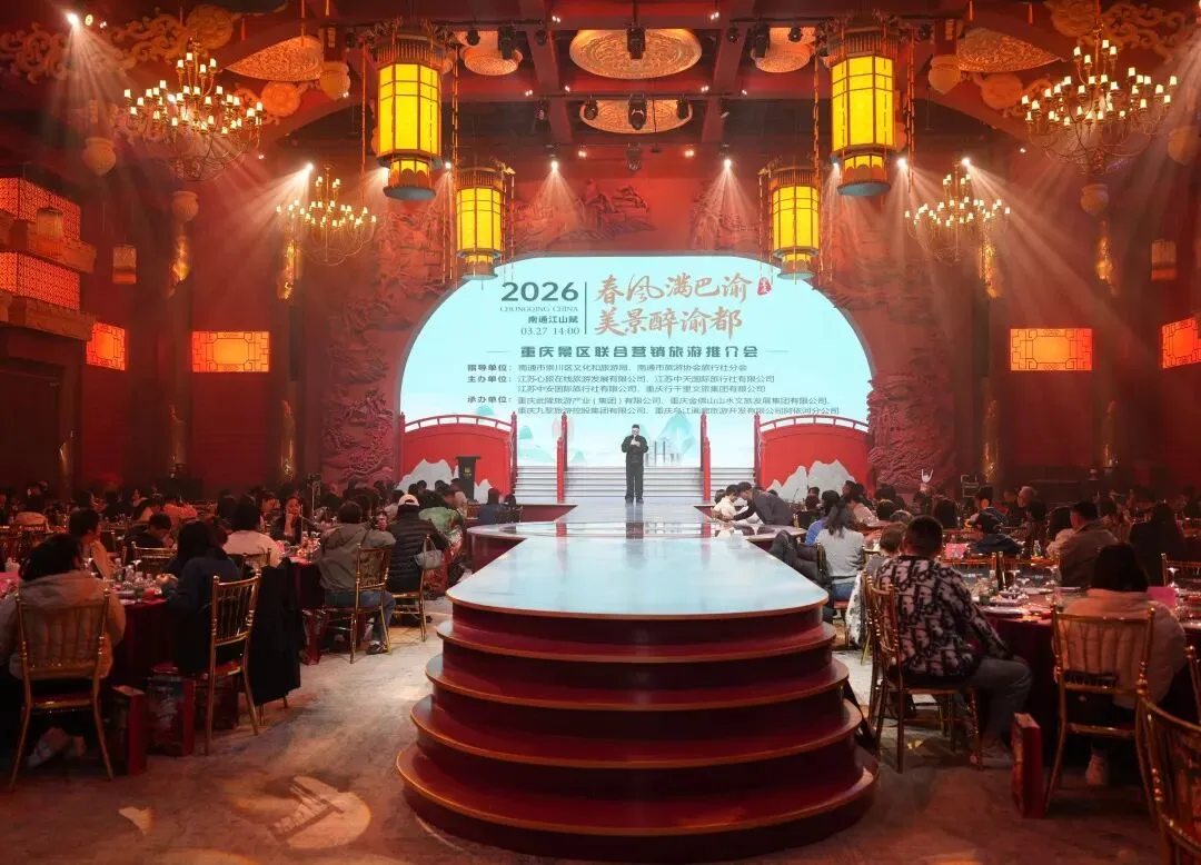 3月27日,“春风满巴渝・美景醉渝都”重庆景区联合营销旅游推介会在江苏南通圆满举办!金佛山文旅集团携手武隆景区、彭水九黎城景区、彭水阿依河景区共同受邀参会。本次推介会精准触达江苏市场,发布精品联游产品,进一步深化渝苏两地文旅合作,激活江苏市场活力!