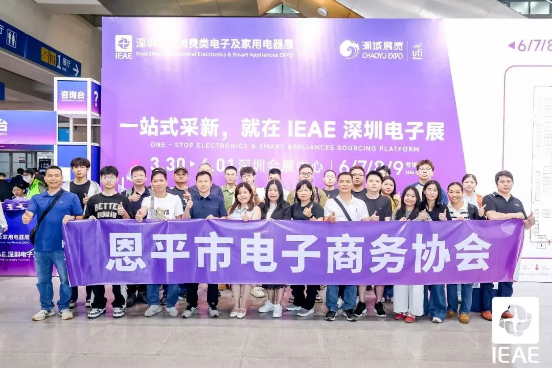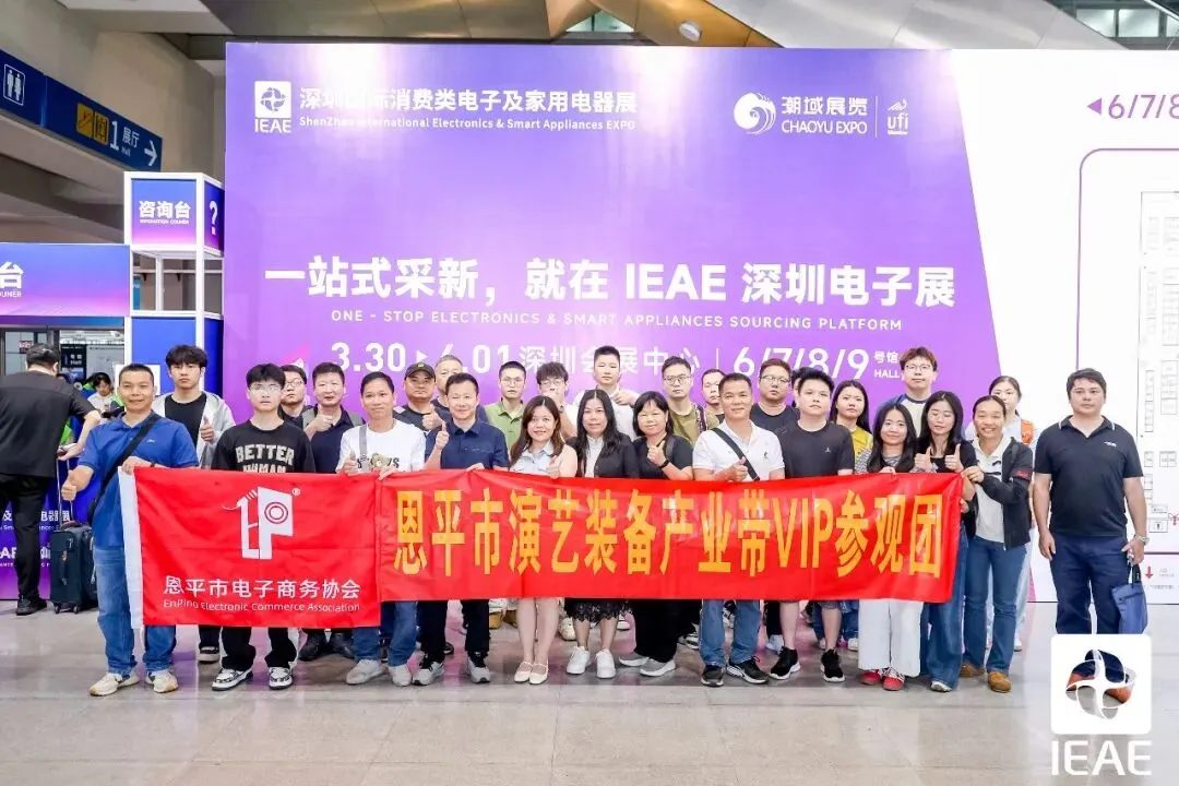 协会常务副会长兼秘书长梁文聪、常务副会长雷永科、秘书处姚佩君参与活动。常务副会长雷永科携恩平演艺装备产业带消费类电子产品亮相展会,充分展示恩平产业优势,积极对接大湾区及全国优质采购商资源,进一步拓展市场渠道、深化产业合作,助力恩平演艺装备产业高质量发展。作为中国电子电器垂直领域的顶尖B2B专业盛会,本次展会以1000+个展位、4万平方米的面积,隆重登场!本届IEAE深圳国际消费类电子及家用电器展由广东电子商会、广东潮域展览有限公司共同主办,IEAE深圳电子展立足于以深圳为核心的粤港澳大湾区枢纽与电子电器产业制造基地,以 “拥内需·拓全球” 为宗旨,精准链接线上线下采购资源、覆盖电子电器消费市场,通过多元化渠道,为参展商及优质买家搭建电子电器一站式采购交易与品牌推广的平台,全力赋能消费类电子及家用电器行业高质量发展!展会汇集了音视频产品、智能穿戴、电脑周边及游戏竞技产品、手机及平板周边产品、储能产品、车载电子产品、户外电子、智能家居、厨房电器、环境电器、个人健康及护理产品、生活电器十二大电子电器热门品类,汇聚100,000+潮流新款爆品,一站式满足经销代理商、零售门店、国内电商、跨境电商等不同渠道买家采购需求。 此外,活动现场精心搭建了高效的产业对接平台,重点设置了一对一精准对接洽谈会与产业带跨境电商精准选品会两大核心环节。参与资源对接的产业带企业代表表示通过协会协助精准匹配与深度赋能,为企业提供了务实、高效的合作通道,有力促进供需双方的无缝衔接与共赢发展。作为本次展会的一大亮点,主办方精心打造了跨境电商创新私模产品展示区,集中展示了一批具有自主设计优势、核心技术支撑的高品质私模新品。展示区聚焦跨境电商市场需求,筛选涵盖多个品类的创新私模产品,既为产业带企业提供了差异化的展示窗口,让企业的创新实力得到充分彰显,也为跨境采购商、服务商搭建了精准选品渠道,实现了“好产品”与“好渠道”的高效衔接,有效提升了相关产业的市场竞争力与品牌影响力。!