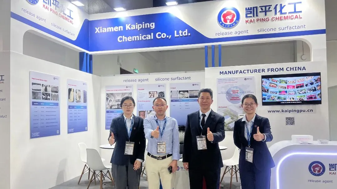 展会期间,厦门凯平化工团队通过现场演示与专业讲解,向全球客户展现了其在聚氨酯领域的深厚技术积淀与强大创新能力。此外,公司还发表技术专题报告,深入探讨水性脱模剂的研究进展与应用方案,赢得与会者高度评价,进一步提升了公司在行业内的技术影响力。