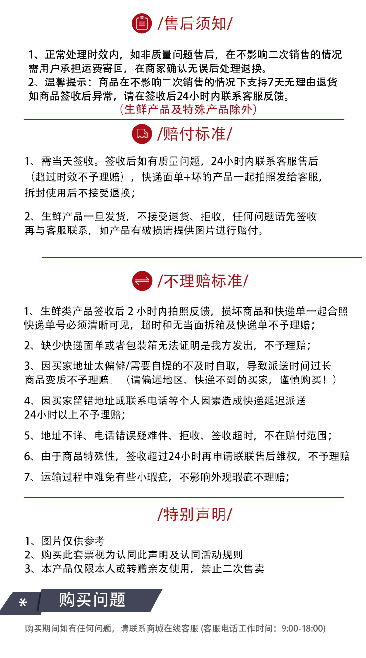【不发货区域】:新疆、西藏、黑龙江、内蒙古、青海港澳台等偏远地区