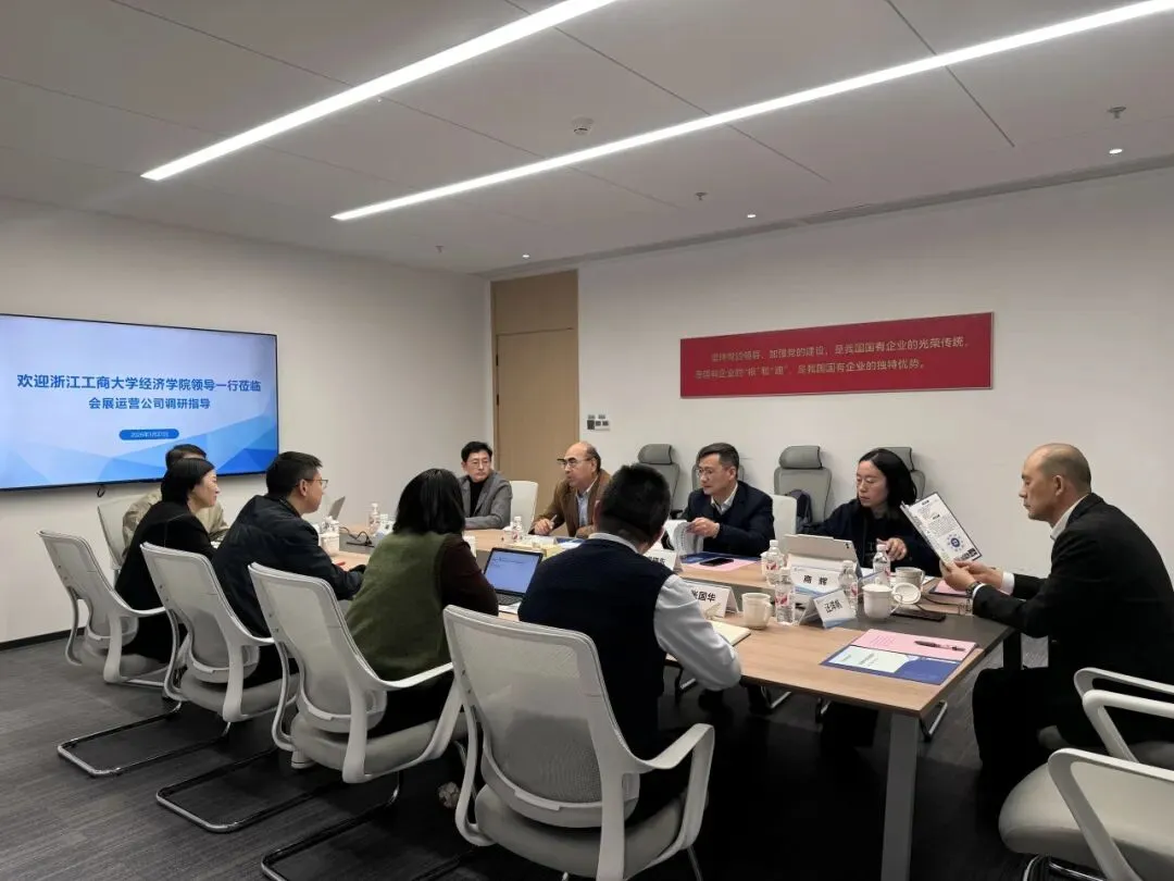 3月27日下午,经济学院院长牛志伟、党委书记虞晓东带队,浙商大杭州校友会副秘书长李晓春,学院党委副书记、纪委书记蒋豪,学院学术副院长、国际经济与贸易系主任商辉及辅导员汪洋帆一同赴杭州大会展中心及开展校企合作调研。杭州大会展中心会展运营公司董事长倪建航等陪同调研,临空经济示范区管委会投促部副部长、综合报税员管理办公室主任周慧洁,会展运营公司总经理张国华,会展运营公司副总经理来萍,会展运营公司数贸产业部副经理章铖毅参加座谈。