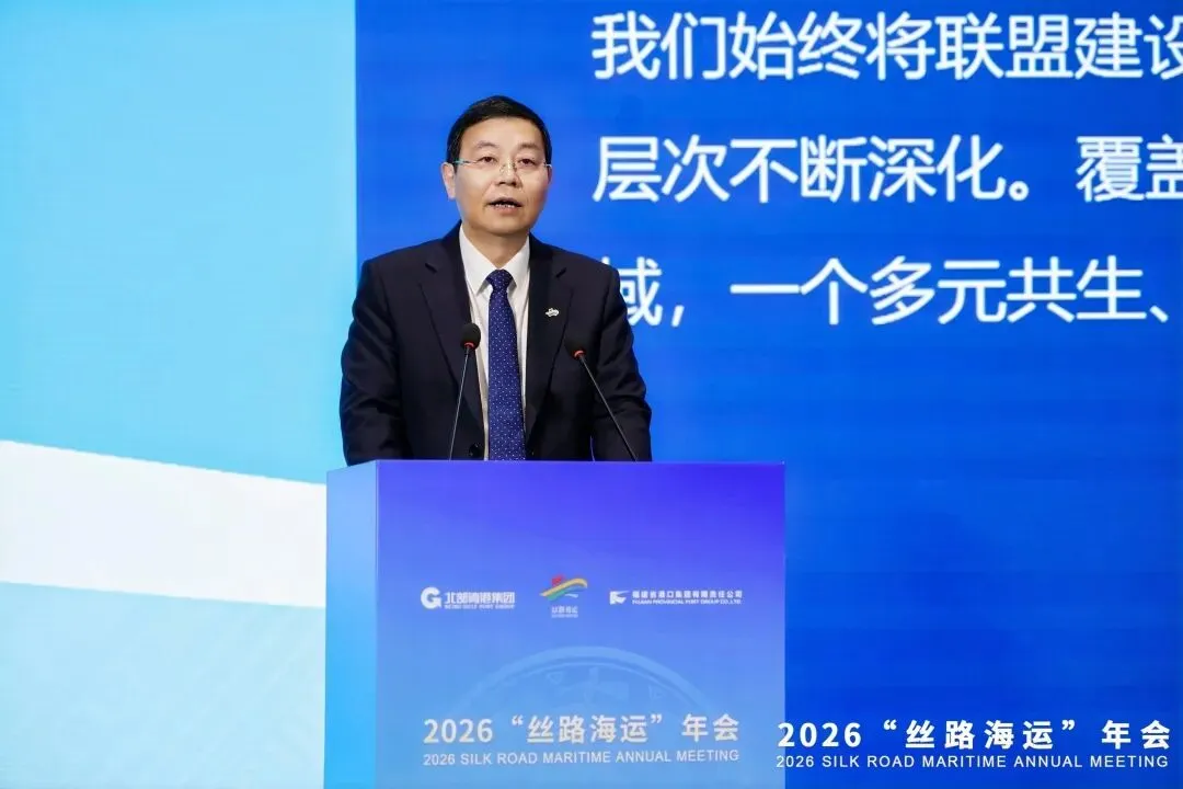 福建省港口集团党委委员、厦门港务控股集团董事长蔡立群作《2025“丝路海运”年度报告》,报告全面梳理了2025年“丝路海运”在联盟扩容、物流通道建设、智慧赋能和绿色发展等方面的发展成果,表明“丝路海运”已成为服务双循环、衔接“一带一路”的重要平台。