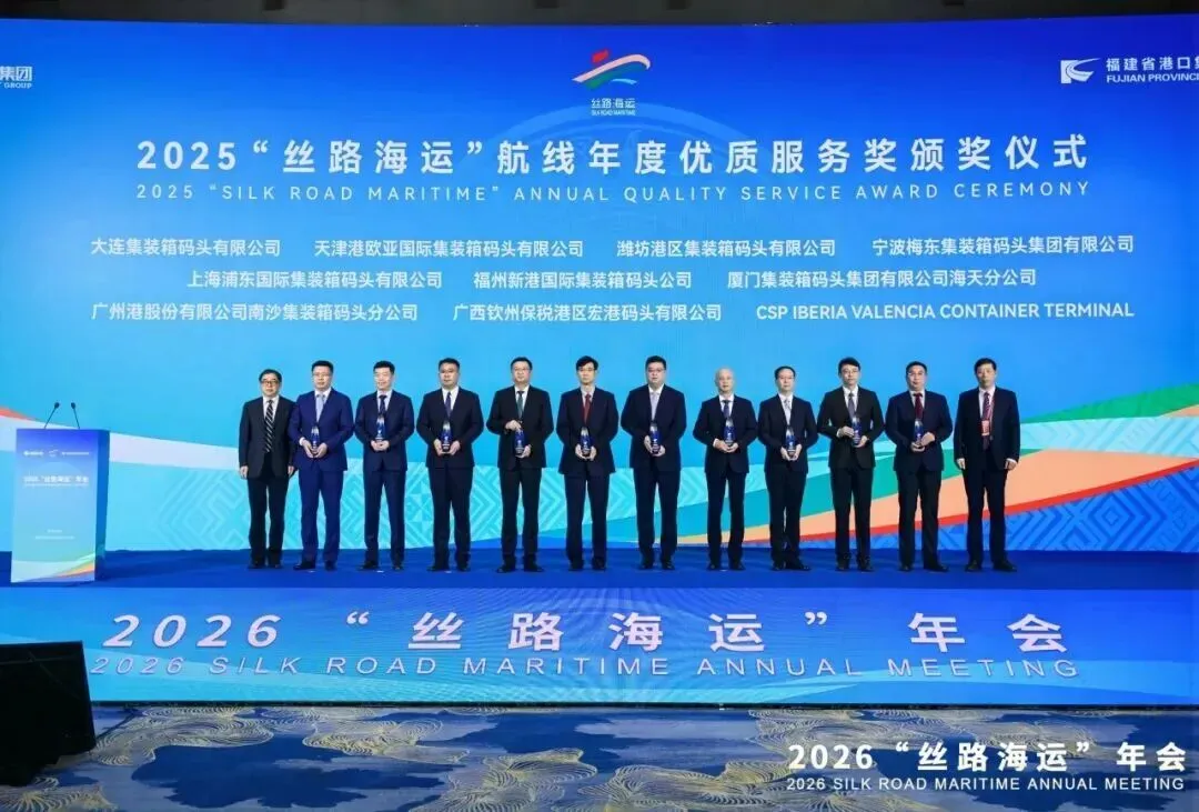 本次年会议程丰富、内容详实。多位行业顶尖专家学者、知名企业代表,围绕国际贸易形势、航运市场发展、港口物流趋势、国际能源分析等关键议题分享前沿观点、解读行业趋势,带来了一场兼具专业性与前瞻性的思想盛宴,为“丝路海运”港航贸一体化发展提供了坚实的智库支撑与充分的实践思路。现场同步举行“丝路海运”联盟新成员授牌仪式、2025“丝路海运”航线年度优质服务奖颁奖仪式,进一步壮大联盟阵营、扩大合作“朋友圈”,树立服务标杆,引领行业整体服务效能提升。