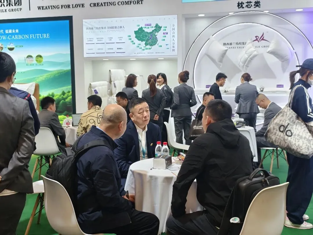 陕西雅兰纺织集团展位客商云集,洽谈合作氛围热烈。集团副总裁屈娇亲临现场,分享行业经验、推介专业解决方案。
