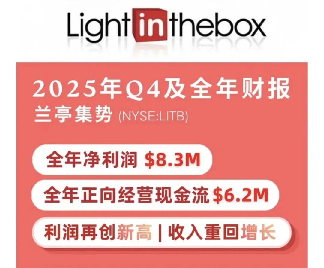 兰亭集势近日发布2025年财报,公司2025年实现营业收入2.24亿美元,净利润830万美元,创下自2022年以来的新高。其中,第四季度营收6300万美元,同比增长9%;净利润达330万美元,创下自2022年以来的季度利润纪录,这也是公司连续第七个季度实现盈利,盈利能力持续增强。