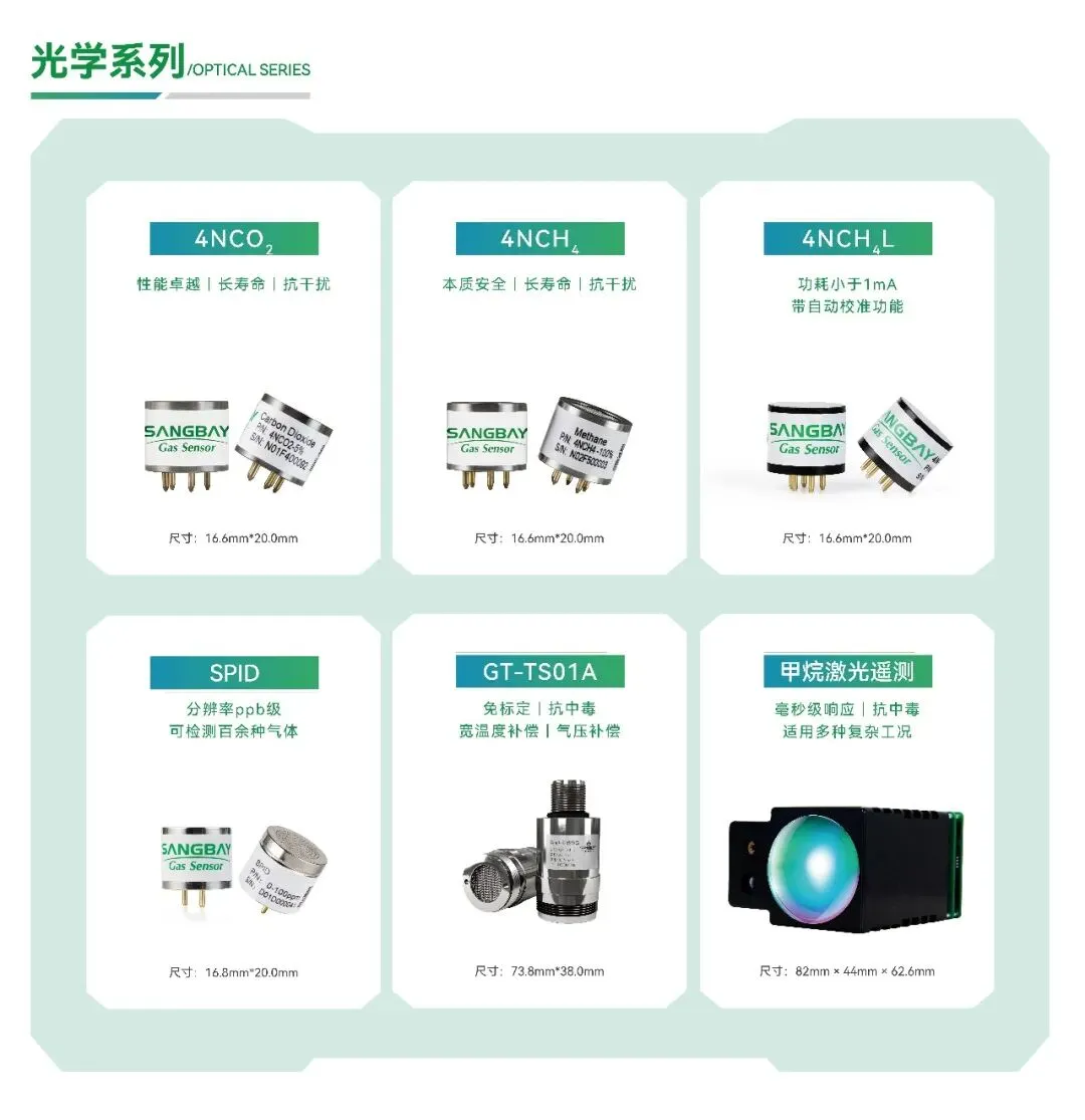 光学系列:涵盖PID(光离子)、红外气体传感器、激光甲烷传感器及激光遥测甲烷传感器,在恶劣环境中稳定运行,可捕捉每一缕无形气体。