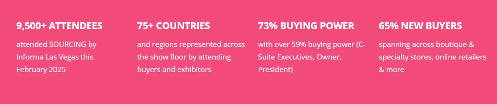 疫情前,该展会每年吸引来自美国及全球110多个国家和地区的96,000名专业买家到场洽谈,3,200余家参展商携约5,500个品牌的21,000类产品集中亮相。观众质量尤为突出:决策层占比达52%,80%的买家意在寻找新合作伙伴,75%现场直接下单。国际买家随团可免费入场,同时享有涵盖零售、预测与销售、趋势、色彩、视觉陈列及技术等领域的免费商业培训。买家普遍反馈该展会是达成交易的高效平台,贸易成功率高达80%。美国39家大型零售机构常年参展,年订货额合计870亿美元,占美国全年服装零售额的半壁江山。中国参展企业中,皮装、针织服装、浴衣、休闲装及童装品类成交表现最佳。2003年2月首次推出的SOURCING AT MAGIC国际生产加工商展区定位精准,参展效果显著,成为展会增长最快的板块,专为大型零售商及品牌批发商精准对接。