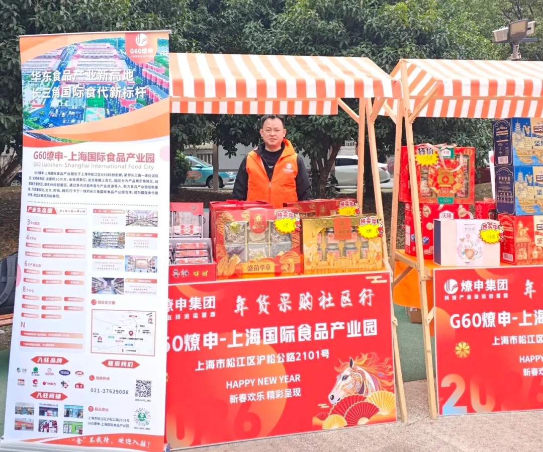 2026年1月,燎申-上海国际食品中心携手泗泾镇叶星社区、张施社区,成功举办“年货采购社区行”社区巡展活动。批发价直供、爆款试吃、满额赠礼等福利引爆居民采购热情,服务居民超2000人次,为社区居民送上了一份实实在在的“新年大礼”!