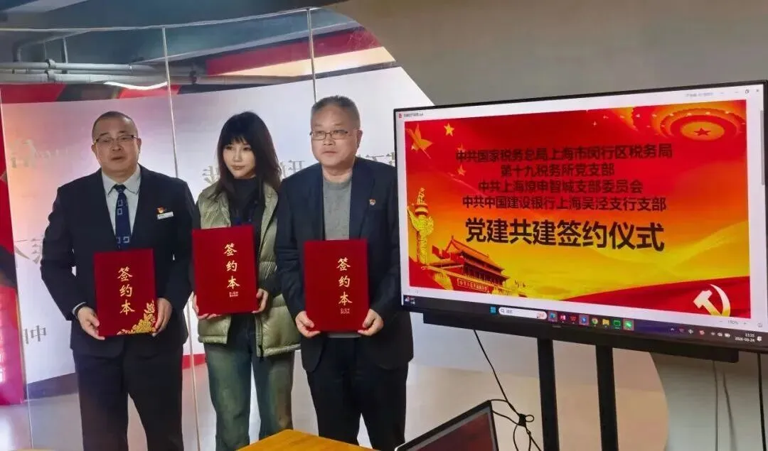 3月24日下午,中共国家税务总局上海市闵行区税务局第十九税务所支部委员会、中共上海燎申智城支部委员会、中共中国建设银行上海吴泾支行支部委员会在燎申智城·吴泾科创中心联合举办党建共建协议签署仪式暨主题党日活动。三方党员代表齐聚一堂,共话党建、共谋发展。