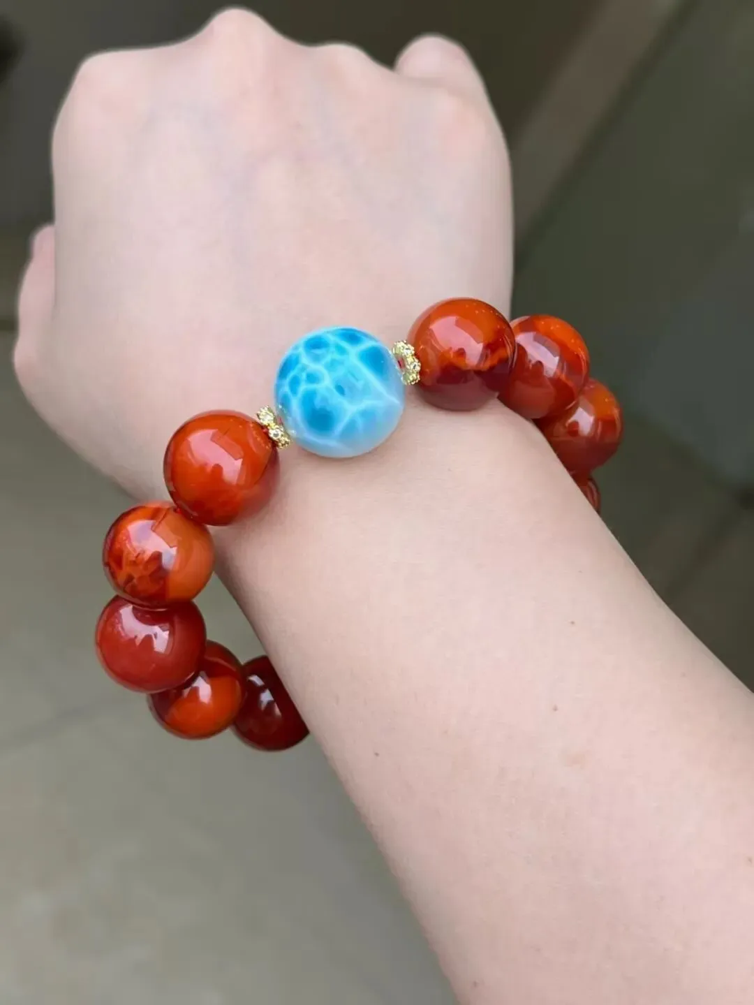 合规染色玛瑙尚且会随着时间推移失水、褪色,没戴多久就变得暗淡无光,失去佩戴价值;而市面上很多低价染色玛瑙,用的都是劣质工业染料,并非合规色剂,长期佩戴染料会慢慢析出,刺激皮肤引发过敏。尤其是半山半水这种特殊纹路的玛瑙,大多是人工染色造假,不仅没质感,健康风险还极高,没必要戴。