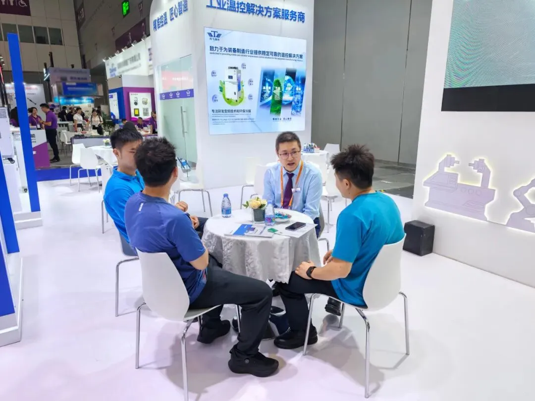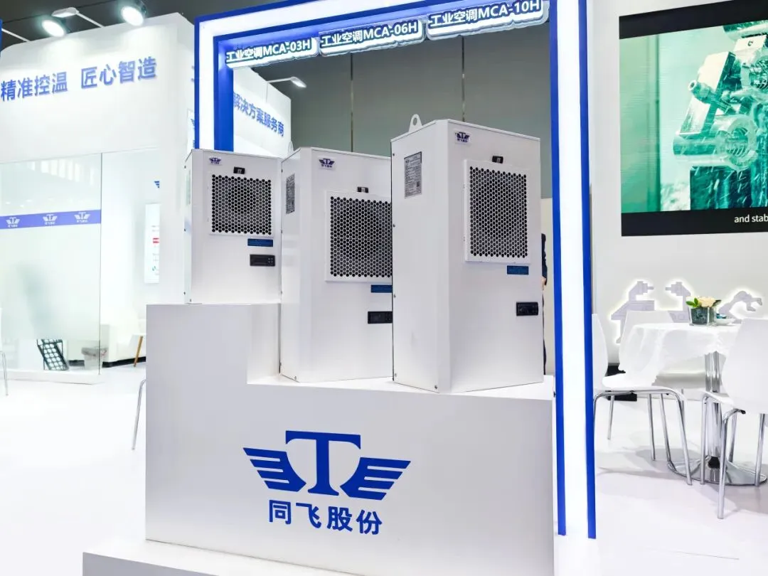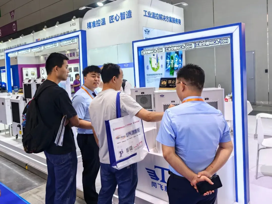 此次参展,同飞股份集中展示了装备制造行业的四大核心产品——工业空调、水冷却机、油冷却机、切削液冷却机,可覆盖装备制造温控全场景。这些产品凭借高性价比的核心优势,成为现场咨询的焦点,彰显了同飞在工业温控领域的深厚技术积淀。