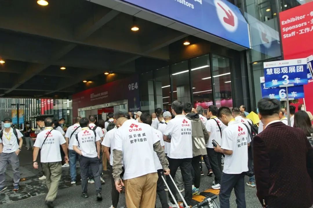 展会现场,德威特约慧聪观展团成员浩浩荡荡向展馆走去,强大阵容磅礴气势迅速吸引观众目光。