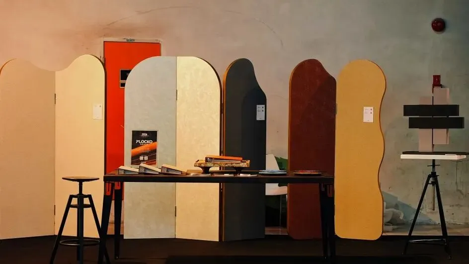展位现场,卡洛斯以FLOCKO水性艺术漆为“颜料”,在空间立面中创作出富有自然韵律的装置作品。