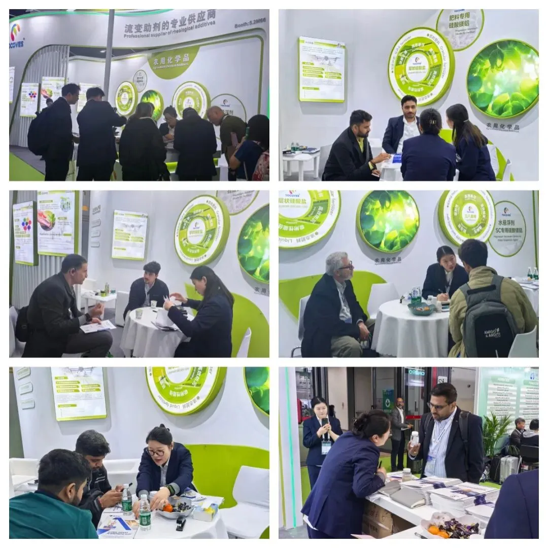 展会期间,不仅有直观的产品展示,更有深度的互动与交流,我们针对高盐、阳离子体系下传统增稠体系失活的行业痛点,以及在水性体系替代传统增稠体系的市场需求等关切点,现场进行产品技术答疑,让每一位到访者更直观的感受抗盐悬浮增稠剂的核心优势和应用价值。现场众多客户对我们的产品表现出浓厚的合作兴趣,并在现场达成初步合作意向,还有老客户借此机会深化合作,为后续的业务拓展奠定了坚实基础。
