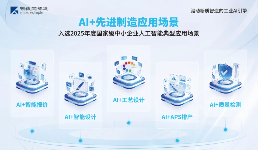 模德宝集中呈现AI研发成果与全场景落地应用,构建从智能报价、智能设计、APS智能排产、质量管理到柔性自动化的完整AI赋能体系。通过AI智能体驱动的全链路协同,实现数据流、业务流、管理流无缝贯通,将传统"经验驱动"模式升级为"数据驱动"新范式,为精密制造企业打造高效、透明、可控的数字化生产新生态。