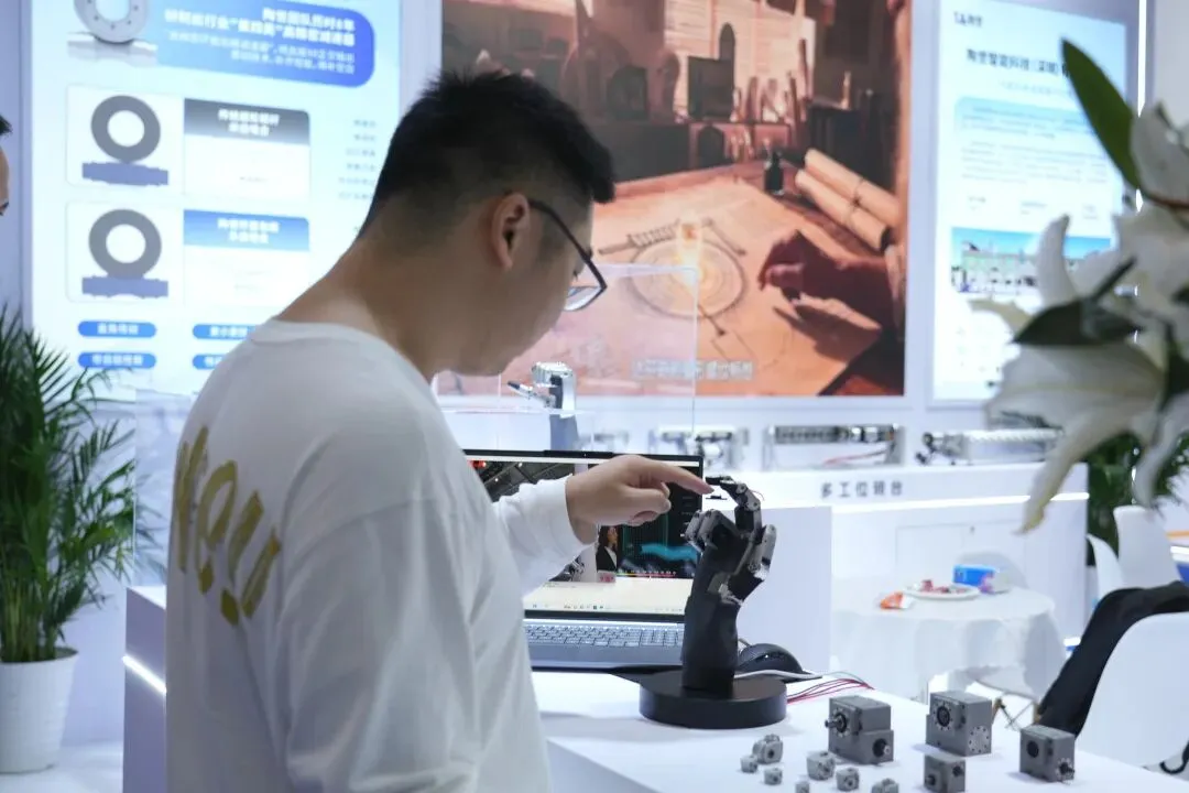 8自由度灵巧手则进一步提升了动作的灵活性与复杂度,能够模拟多种人手姿态,在现场演示中赢得众多技术人员的关注。