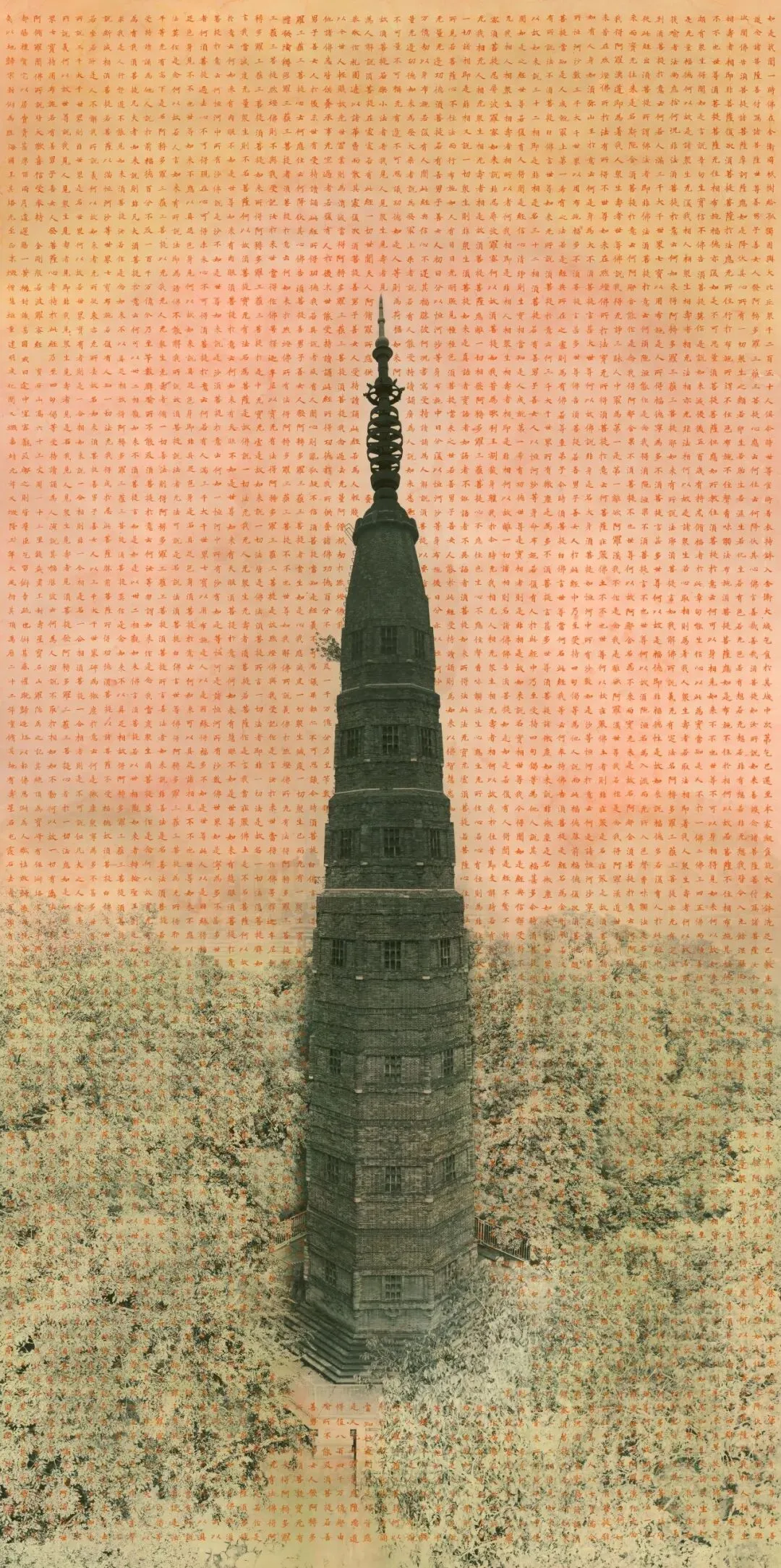 陈见非携《保俶塔》系列再度归来。他擅长以书法、篆刻为根基,将古塔作为象征性的影像载体,以书法的笔意、篆刻的痕迹与材料的肌理,共同生成介于文字与图像之间的视觉语言。