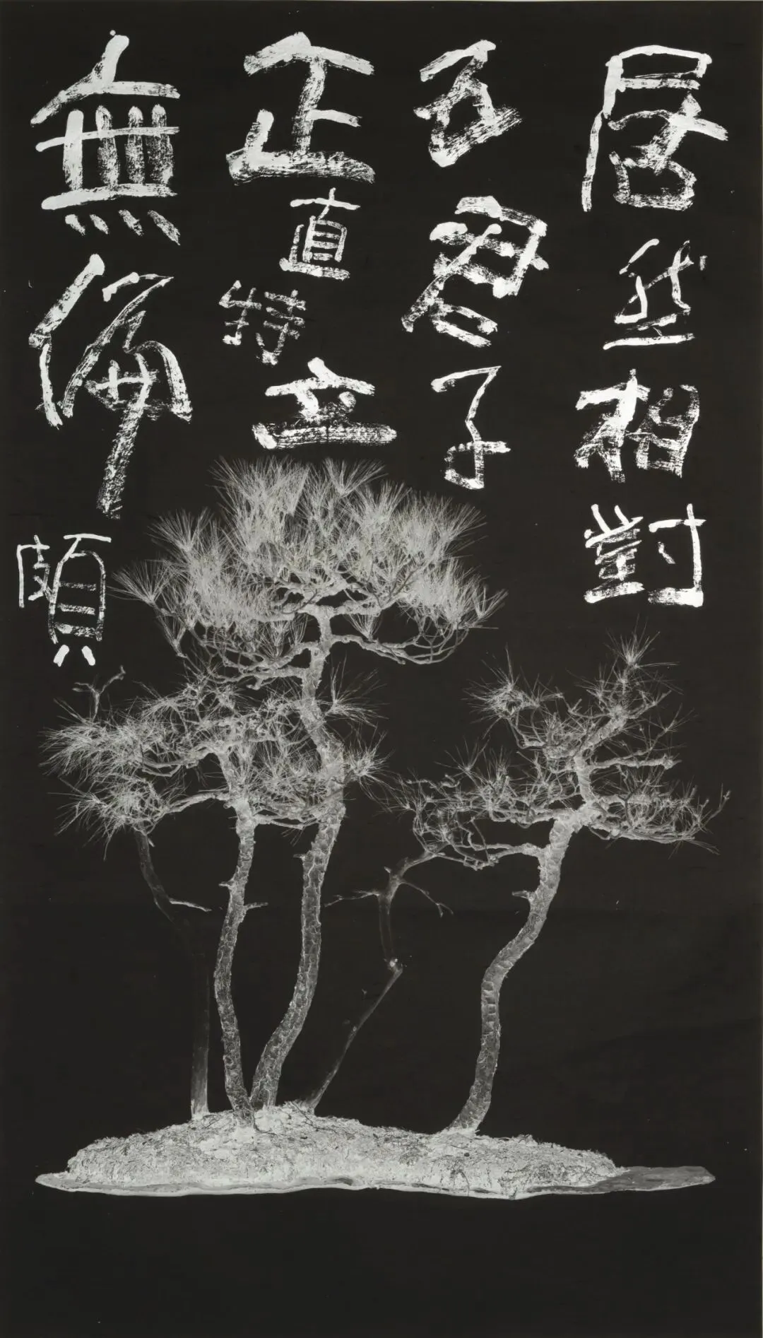 曾翰的《拓松》系列,以松柏盆栽为对象,展开了一次跨越千年的文化洄游。他将书写的笔势与留白融合进影像结构,探索汉字作为视觉元素在当代语境中的转化潜能。