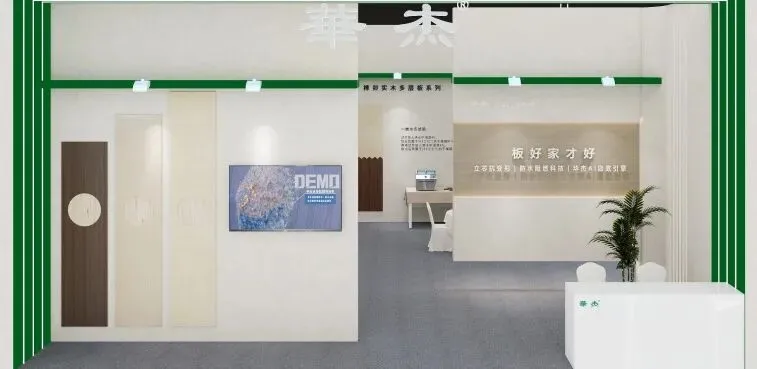本次展会,华杰聚焦环保、耐用、安全的板材需求,带来抗变形立芯板、实木生态板、榫卯实木多层板、冰幕饰面阻燃装饰板等明星产品,全方位满足家装、工装、商装等多元场景。