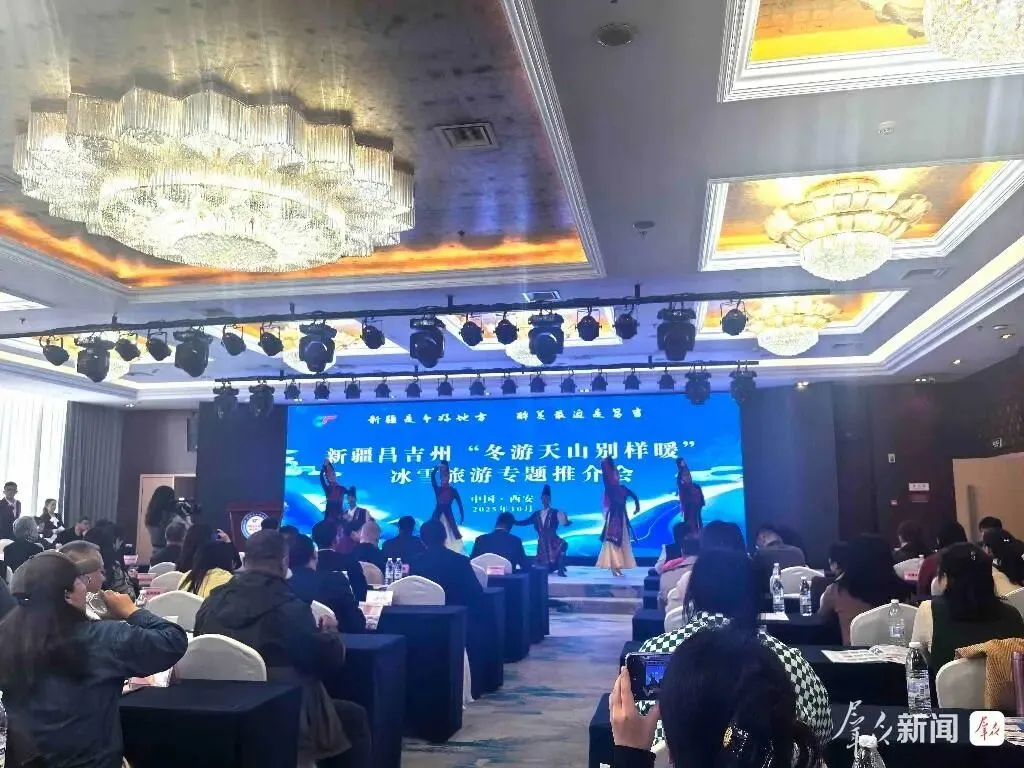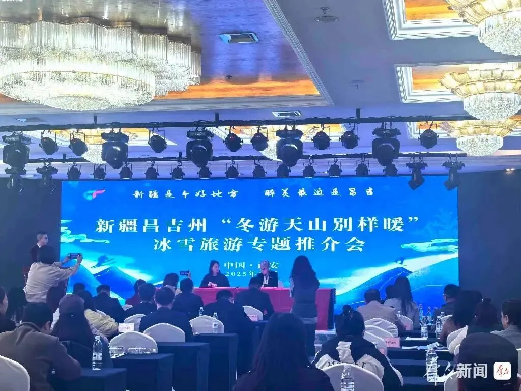 10月30日,2025新疆昌吉州冰雪旅游促进各民族交往交流交融专题推介会走进千年古都西安。西安市文化和旅游局、新疆维吾尔自治区驻西安办事处、西安新疆商会、陕西省旅行社协会、西安市重点文旅企业、旅行社、研学机构、自驾游组织和新闻媒体等近200人参加本次推介会。