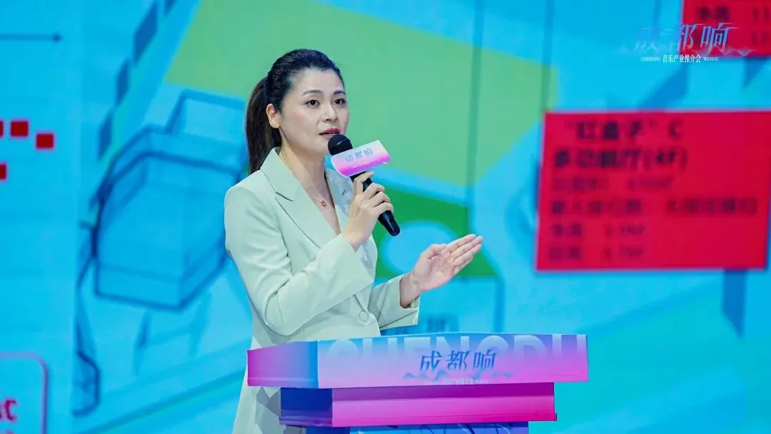 作为本次推介会的核心环节,现场推介板块层层递进、重点突出,全面释放成都音乐产业的发展信号与合作机遇。首先,成都音乐文创园管委会相关负责人上台,系统解读了音乐坊片区的整体规划布局、政策扶持体系以及未来发展前景。该负责人表示,音乐坊片区聚焦音乐艺术与数字创意两大产业,片区原创活力、文旅融合指数全国领先,依托天府回声计划吸引音乐人落地,叠加全链条政策扶持,未来将打造国际音乐之都核心区,持续释放音乐产业与文旅消费融合发展潜力,为入驻企业和人才提供全方位的政策支持与服务保障。