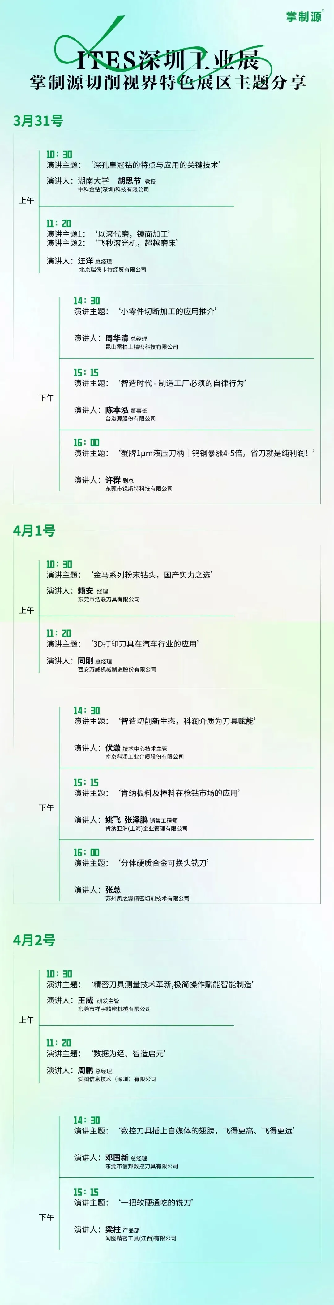 2026年3月31日,第27届ITES深圳工业展暨高端装备产业集群展在深圳国际会展中心(宝安)正式启幕。作为深耕切削加工领域20年的专业媒体,掌制源传媒携16家行业代表企业,联合打造“掌制源——切削视界特色展区”(8号馆8A01),围绕车、铣、钻、镗及刀具周边设备与检测技术,系统呈现切削加工全链路解决方案。