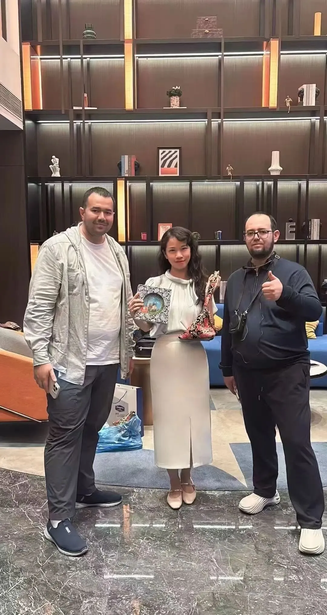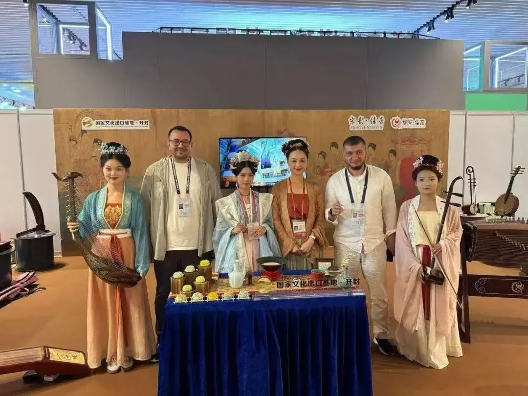 现场工作人员与采购商合影