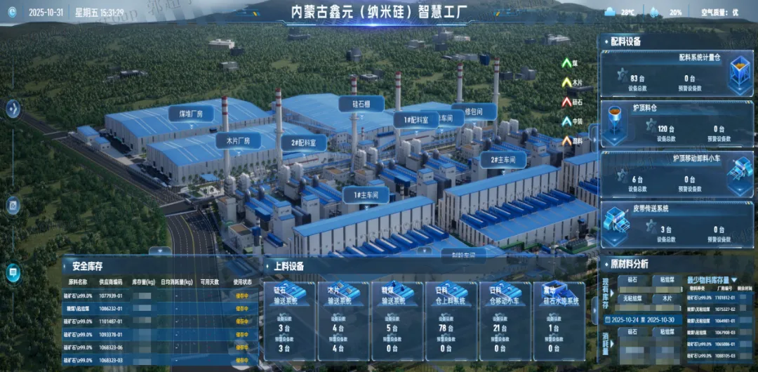 (三)鑫元智慧工厂建设。实现SAP、鑫智链、无人值守、DCS、APC、MES等系统全业务流程贯通;生产配电集中控制;智慧料场自动盘点;车辆定位管理系统实现对现场人员、车辆、物料、作业区域进行精细化管理;无人值守系统大幅度减少人为干预,进一步提升数据准确性;三维数字孪生应用,实现厂区业务的实时监控和模拟。