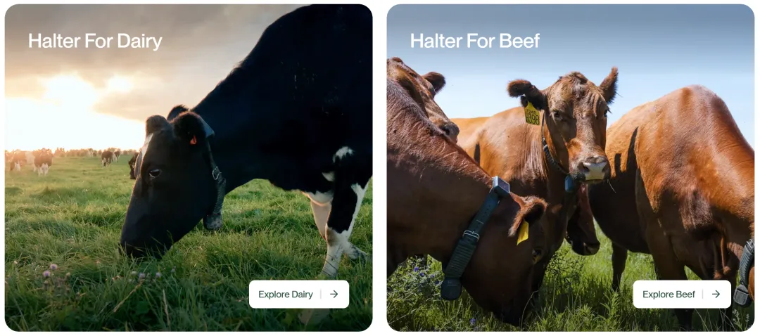 Halter 成立于 2016 年,核心产品为搭载 GPS 的智能项圈,可构建虚拟围栏,农户无需物理护栏即可管理、驱牧牛群。通过音频提示与温和震动,牧场主可在智能手机上远程引导、圈定牛群,无需破土施工或架设围栏铁丝。