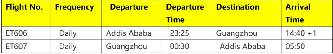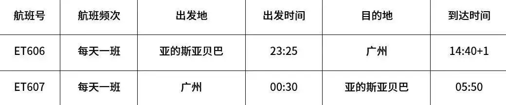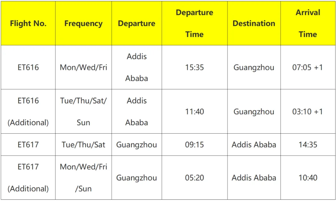此次增班专为非洲、南美客商及广大旅客量身打造。ET617/616航线由原每周3班加密至每日1班,加密期间广州始发航班从每周10班增至14班,实现每日双航班通达。