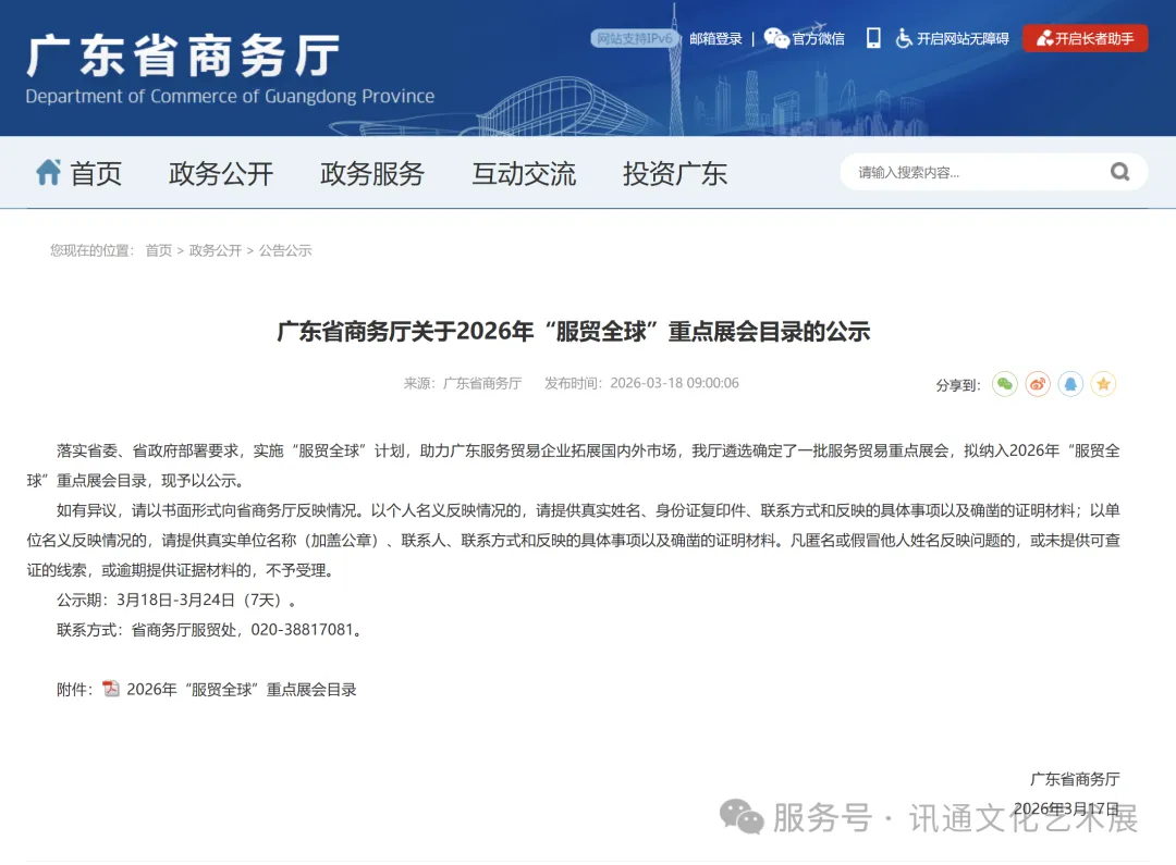6 | 广东省商务厅 | 2026年“服贸全球” 重点展会 |