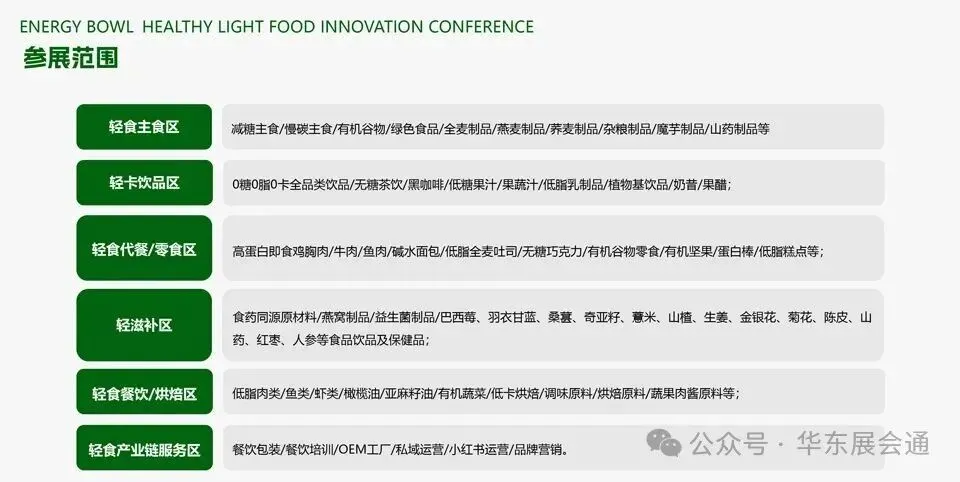 作为国内首个聚焦轻食产业的生态型展会,在这里,您将看到健康轻食如何从“小众标签”进化为“全场景刚需”;无论是运动营养、新电商突围,还是餐饮升级、团餐革新,七大主题论坛将深度解析行业增长的新杠杆;200+展商、10000+渠道买家及精准人群、50+行业领袖、30+媒体……一场关于“吃”的健康革命,正在杭州等你。