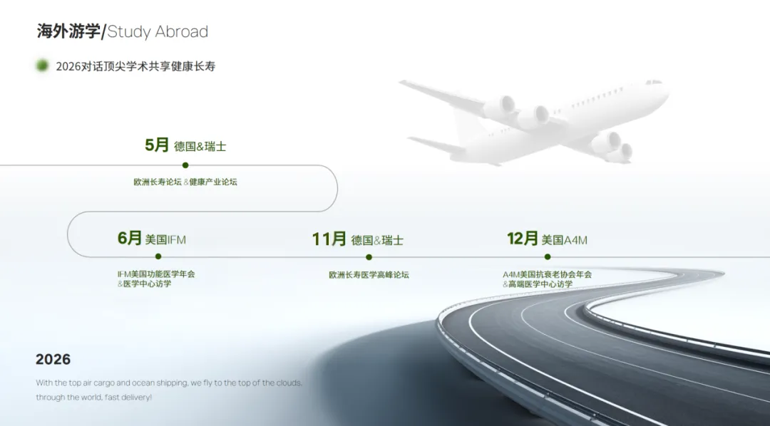 2026GLMI有多场海外研学行程,带你走进德、瑞、美等国顶尖机构,实地学习国际领先的长寿医学与功能医学实践,欢迎大家报名和我们一起!