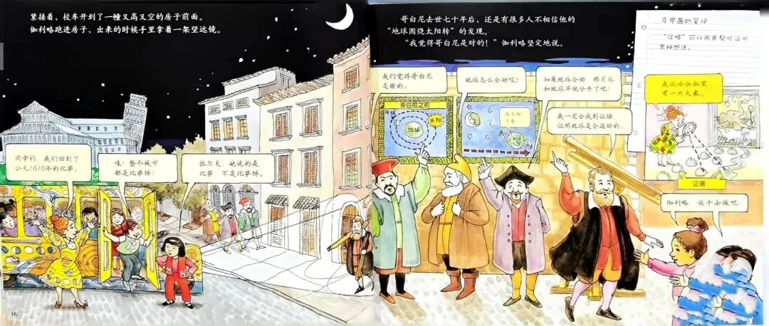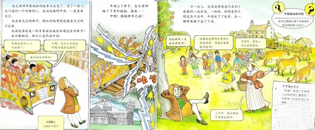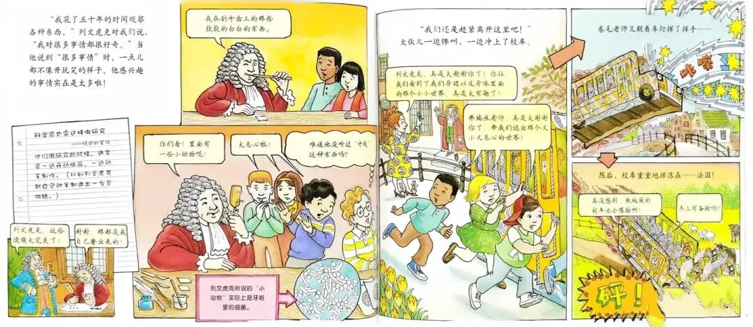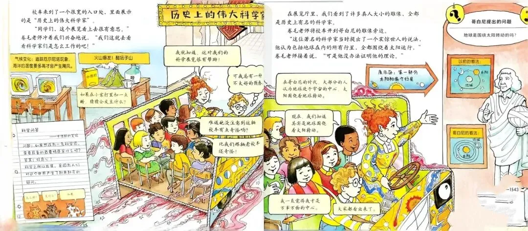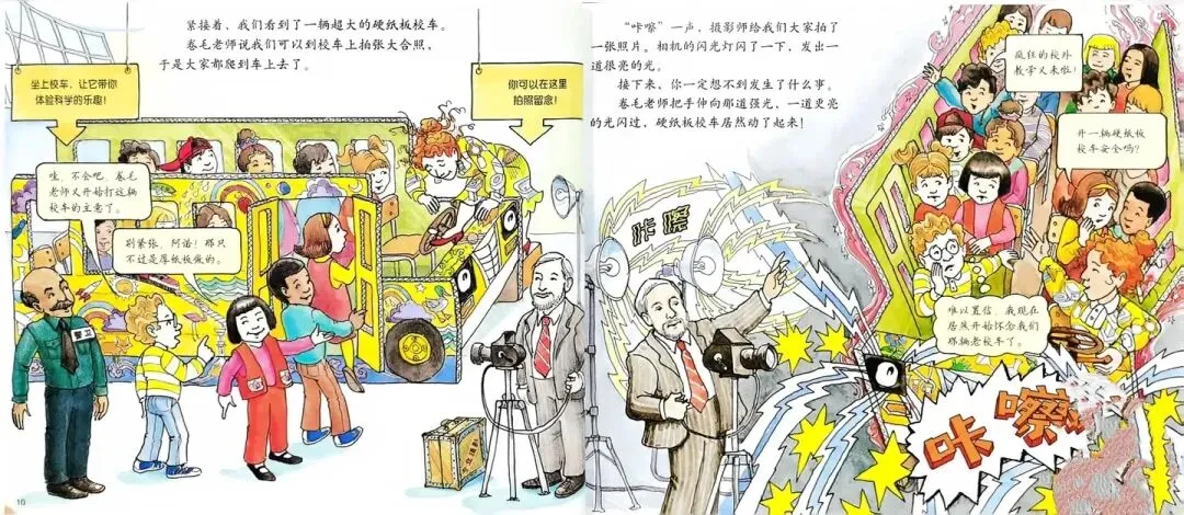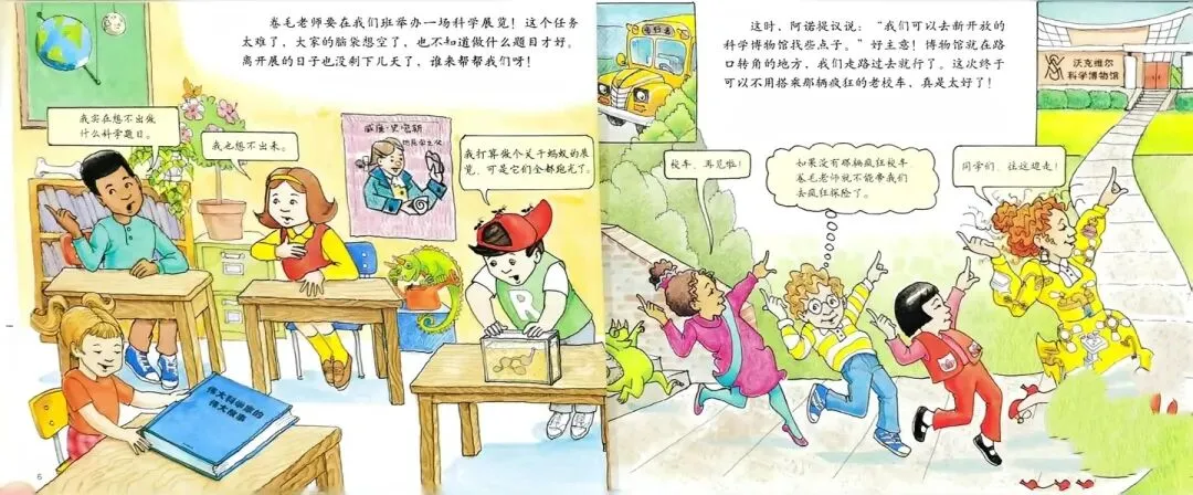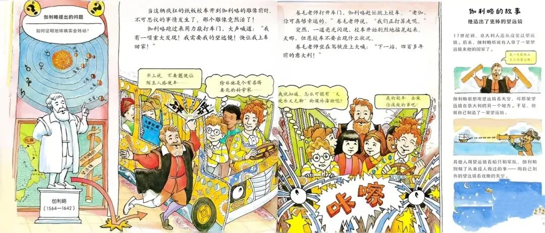 卷毛老师布置了科学博览会的准备任务,同学们却毫无头绪。在科学博物馆的“伟大科学家”展览中,一辆硬纸板校车因闪光灯的强光“复活”,带着大家穿越时空,先后遇见伽利略、牛顿、列文虎克、巴斯德、居里夫妇和爱因斯坦等科学家。他们在伽利略的望远镜前见证日心说的验证,在牛顿的苹果树下思考万有引力,在居里夫妇的实验室感受放射性物质的探索,最终满载灵感回归,顺利完成科学博览会的展示任务。