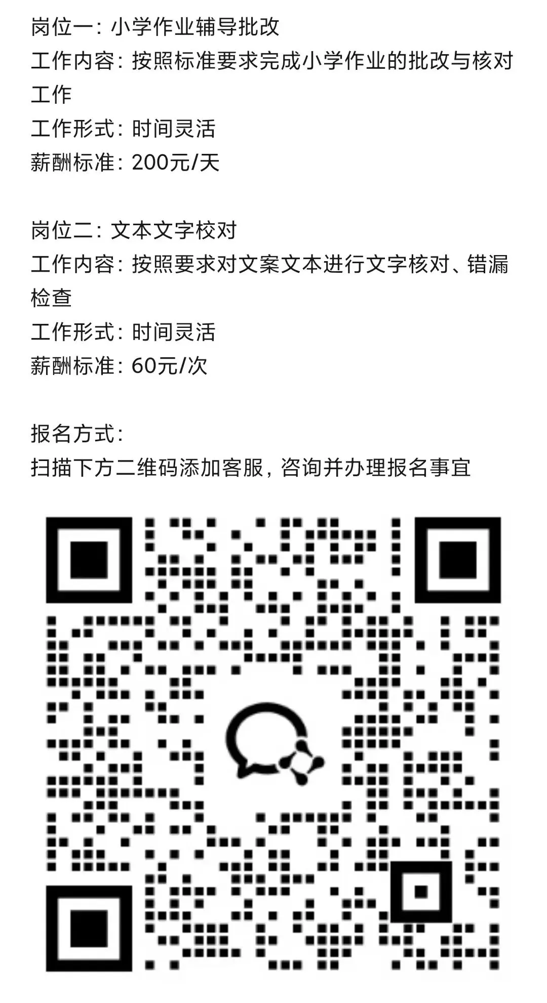 时间:灵活排班,可协调,特别适合学生及有空闲时间者