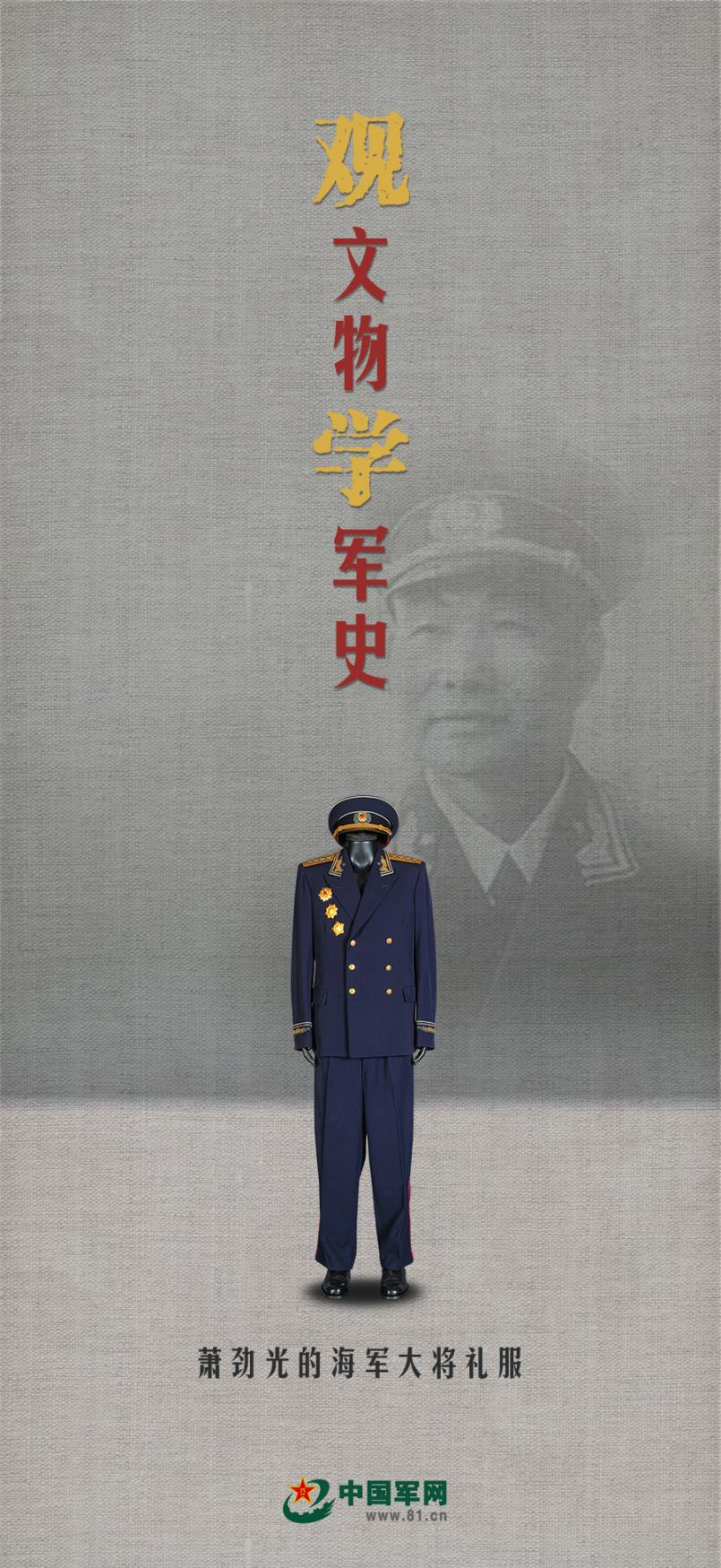 矢志不渝跟党走,笃行不怠建海军。萧劲光大将把毕生精力都献给了中国人民的革命事业,献给了人民海军的建设事业,这件海军大将礼服正是对萧劲光戎马生涯的光辉见证。