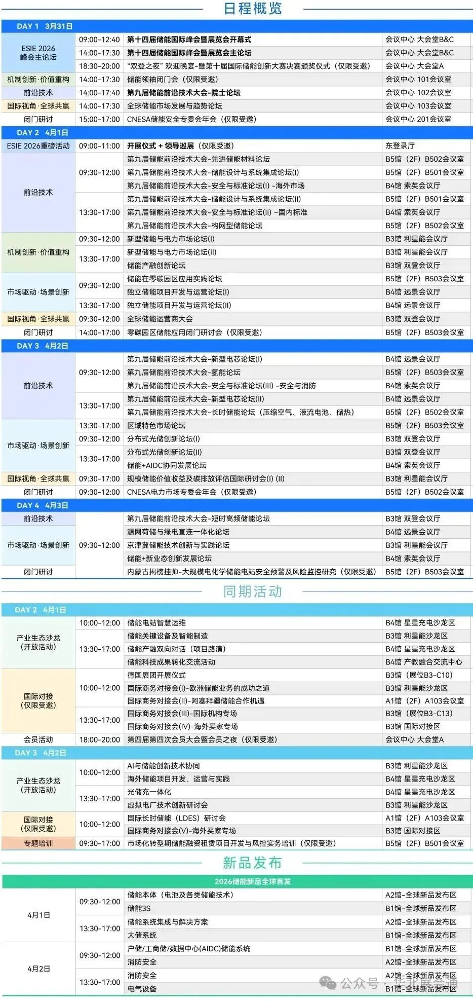 2026第十四届储能国际峰会暨展览会展览面积预计达16万平米,开设六大主题展馆,同期举办开幕式、高峰对话、院士论坛、主题论坛、闭门研讨、应用沙龙、国际储能创新大赛、产业报告与权威榜单发布、新品发布等系列活动。