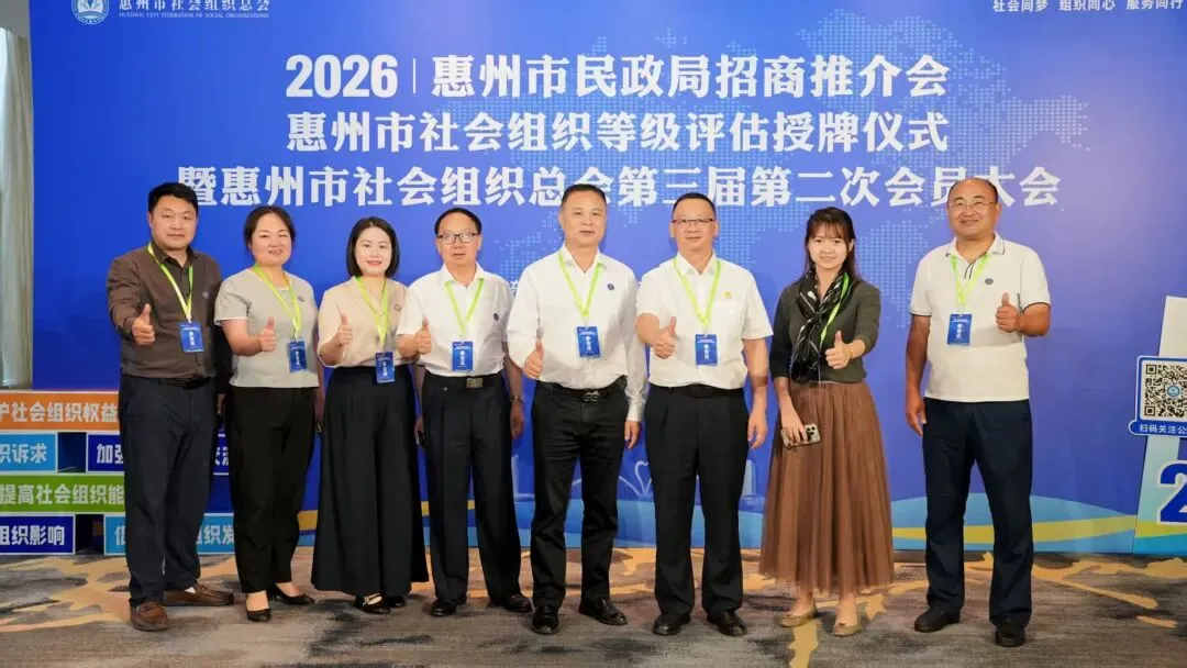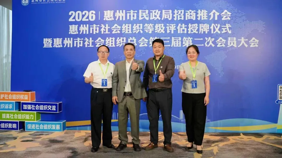 2026年3月29日下午,惠州市民政局招商推介会、惠州市社会组织等级评估授牌仪式暨惠州市社会组织总会第三届第二次会员大会在惠州市惠城区富力万丽酒店隆重举行。本次大会汇聚了惠州市300多家社会组织代表、行业精英及政府职能部门相关领导,我会会长及党支部委员罗回新、秘书长屈紫悦代表我会参加会议。