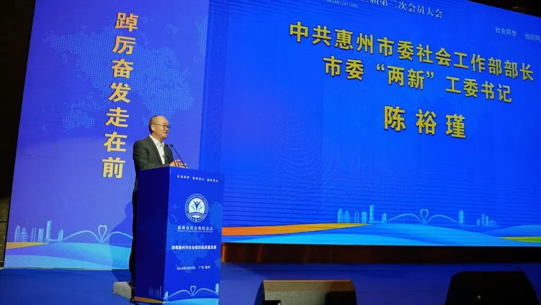 其中,惠州市民政局招商推介会暨全市社会组织等级评估授牌仪式环节将大会推向高潮。在招商推介环节,惠州市委社会工作部陈裕谨部长及市民政局吴素青局长等相关负责人详细介绍了惠州市的招商政策、产业优势及发展机遇,为各社会组织搭建了资源对接、合作共赢的平台;等级评估授牌环节,对获评优秀等级的社会组织进行表彰授牌,充分肯定了各社会组织在规范运作、服务社会等方面的突出表现。