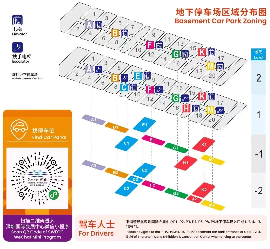 如果您选择自驾,来馆请导航深圳国际会展中心P1、P2、P3、P4、P5、P8、P9地下停车场入口或1、2、4、13、16号门。